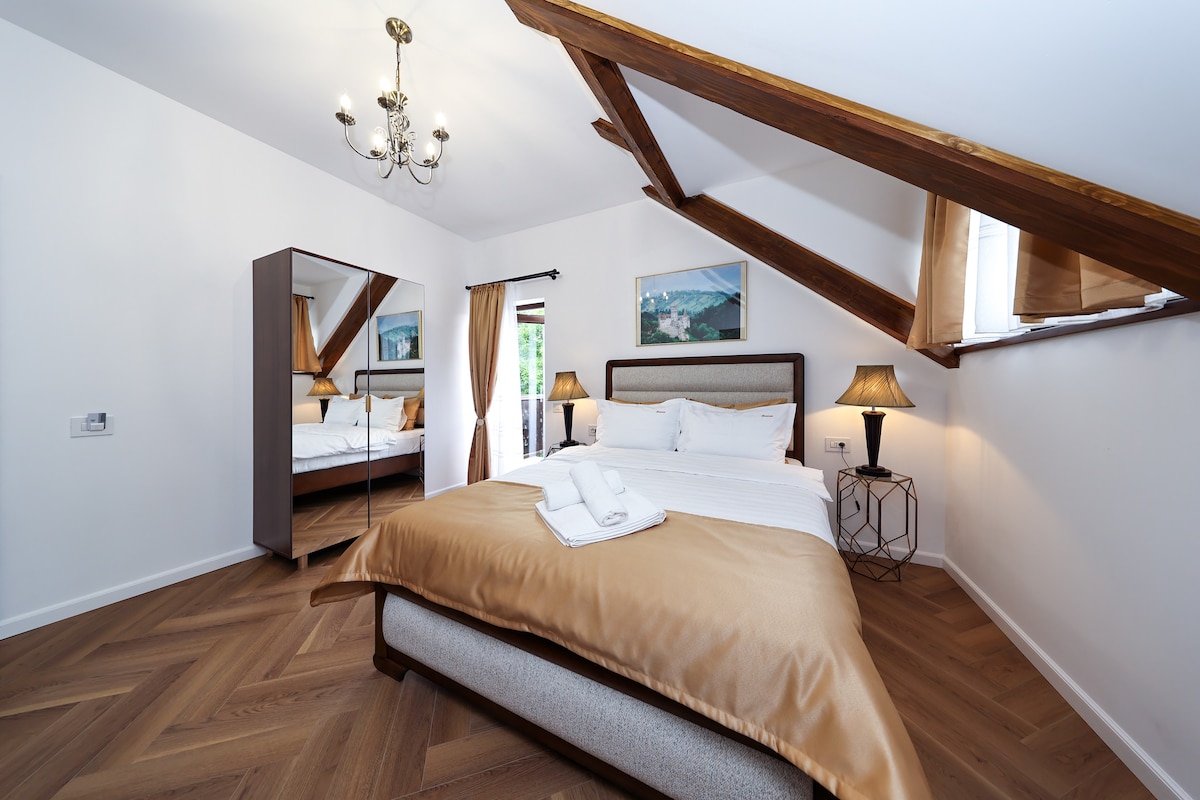 Erleben Sie den Charme von Brasov in unserem eleganten Loft-Zimmer im 1910 Boutique Hotel. Dieses stilvolle Refugium verbindet modernen Komfort mit historischem Charakter und bietet einen atemberaubenden Blick auf die ikonische Schwarze Kirche und die Dächer der Altstadt. Das Loft ist perfekt für einen romantischen Kurzurlaub oder einen ruhigen Rückzugsort und bietet gemütlichen Luxus, natürliches Licht und einen unvergesslichen Blick auf die zeitlose Schönheit der Stadt.