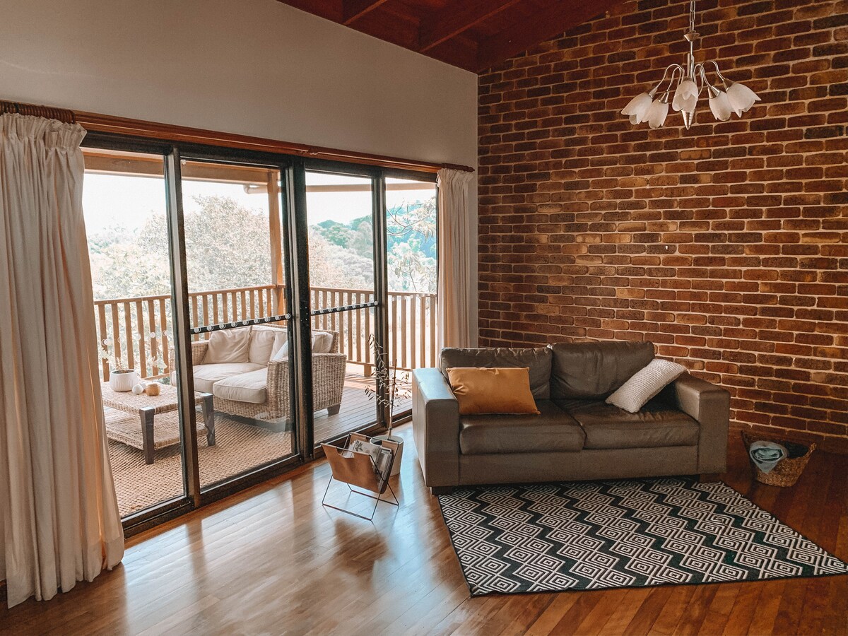 Take my hand and let me guide you to the Water through the Woods… Water & Woods is a self-catered cabin of cosiness, nestled under a canopy of trees, and just steps away from the Purling Brook Falls hiking trails. Here is your opportunity to relax… or be active – surrounded by a very special part of the Gondwana rainforest, less than 50 minutes from the hustle and bustle of those bright lights of the Gold Coast. Yes, that’s what you’re seeing from the breakfast bar.