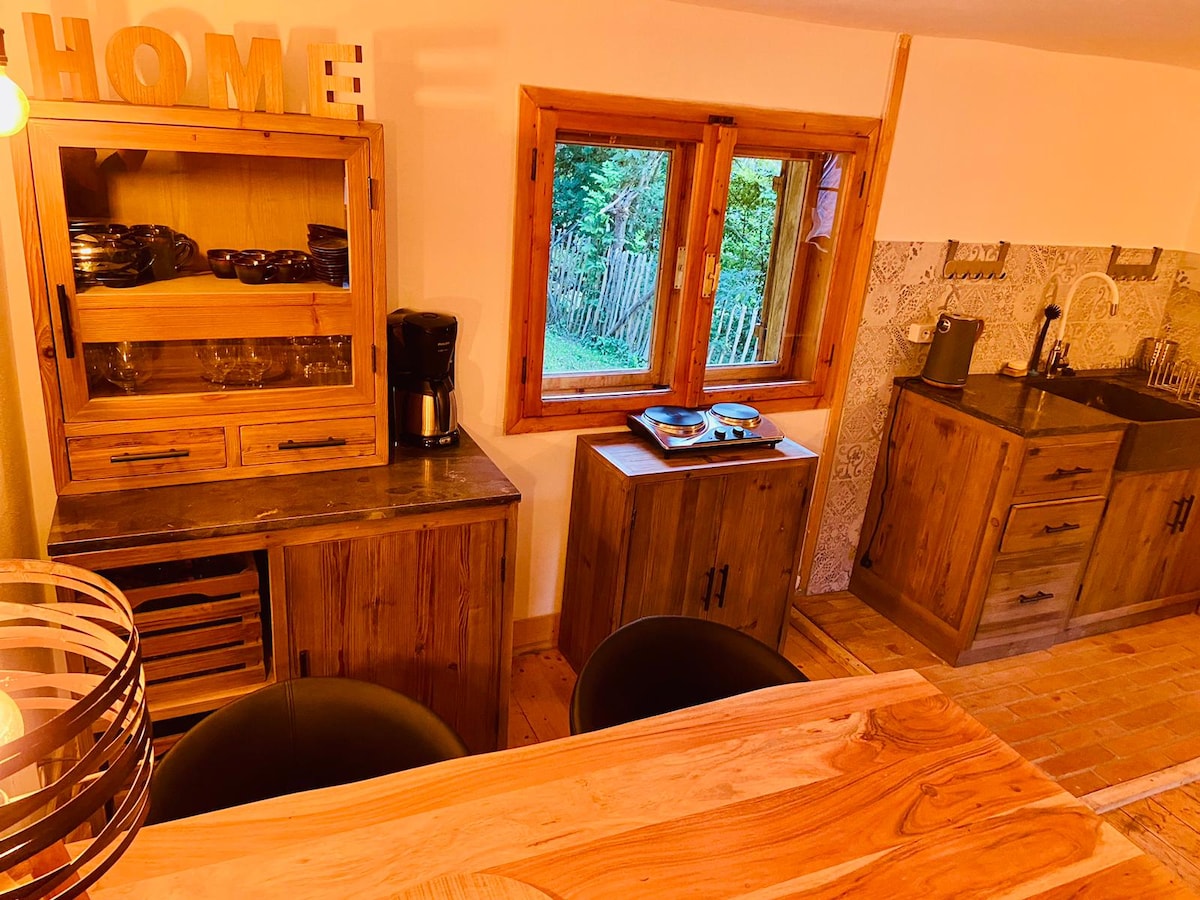 Schicke und gemütliche OFF-Grid-Hütte in der Nähe des Waldes, mitten im Apuseni-Gebirge mit spektakulärem Blick auf den vulkanischen Gipfel. Wenn du die Natur liebst und Ruhe genießt, ist dies definitiv ein Ort, an dem du dich entspannen und dich von absolut allem trennen kannst, was Lärm und künstliches Licht bedeutet. Entdecken Sie die Freude an einfachen Dingen durch das Zwitschern der Vögel und die saubere Luft aus einer Höhe von 800 m.