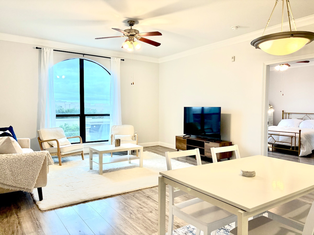 Diese charmante Wohnung mit einem Schlafzimmer bietet einen ruhigen Rückzugsort nur 30 Minuten von Houston, Texas, entfernt, perfekt für einen erholsamen Kurzurlaub. Mit weicher Beleuchtung, gemütlichen Möbeln und einer voll ausgestatteten Küche fühlt es sich wie ein zweites Zuhause an. Egal, ob du dich nach einem Tag voller Erkundungen erholst oder einen ruhigen Abend genießt, dieses „Urban Nest“ bietet Komfort und Ruhe in einer ruhigen Nachbarschaft.