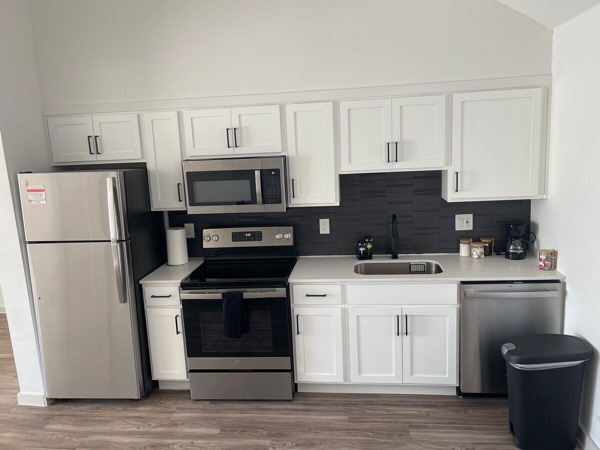 Hallo und willkommen im Loft on Alamo! Komm, entspann dich und schalte ab in diesem geräumigen Grundriss von über 400 Quadratfuß und komplett eingerichtet. Sie befindet sich auf meinem Grundstück über einer Doppelgarage. Sie verfügt über 1 Kingsize-Bett, einen Kleiderschrank, ein Badezimmer in voller Größe und eine Küchenzeile mit Waschbecken, 2-Flammen-Herd, einen Kühlschrank und eine Keurig-Kaffeemaschine. Es gibt auch einen Smart-TV und WLAN. RAUCHEN ist VERBOTEN. Du hast auch deine eigene private Terrasse und einen eigenen Eingang zur Treppe, die zum Loft führt.