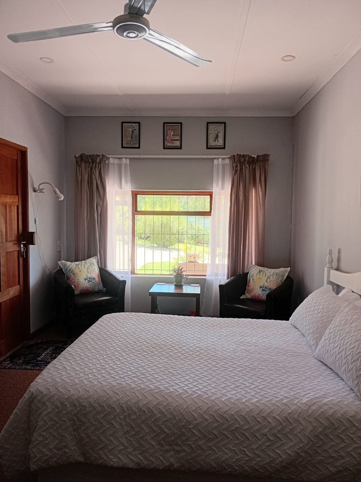 Ein-Zimmer-Ferienhaus, sehr privates, romantisches Ferienhaus mit Kingsize-Bett und offenem Kamin. Viktorianische Badewanne für zwei, exotische Außendusche. Voll ausgestattete Küche mit Kühlschrank, Braai und Gasherd. Ein elegantes Wohnzimmer mit offenem Kamin. Französische Türen öffnen sich auf eine schattige Veranda mit einem Braai-Platz. Ein tiefes Tauchbecken führt von der Veranda weg und bietet einige der schönsten Aussichten, die wir bieten können. Das Ferienhaus wird nicht gewartet und wir werden unser Bestes tun, um dich überhaupt nicht zu stören.