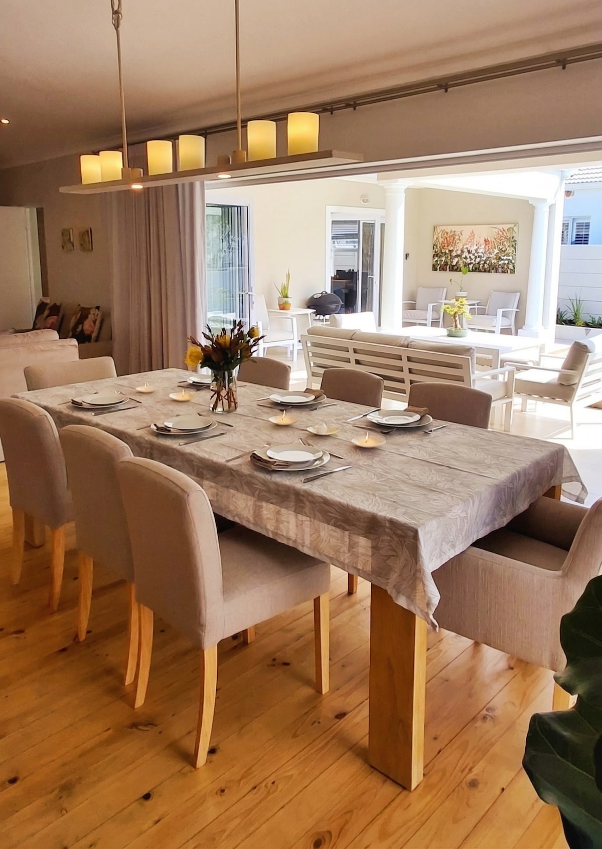 Nuwe Lingen Luxury Accommodation ist ein stilvolles Ferienhaus mit 3 Schlafzimmern und 3 Badezimmern in Eastcliff, Hermanus, ideal für Familien oder Gruppen von bis zu 8 Personen. Genieße einen gemütlichen Innenkamin, einen privaten Splash-Pool und einen schattigen Außenbereich für entspannte Nachmittage. Ruhig gelegen, aber nur wenige Gehminuten vom Klippenpfad, Restaurants, Märkten, Stränden und dem Stadtzentrum entfernt — ein komfortabler, gut gelegener Ausgangspunkt für die Erkundung der Wal-Küste.