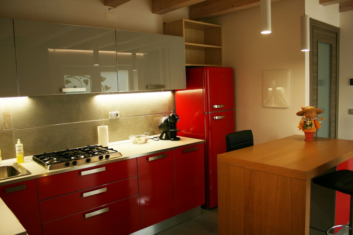 Der ideale Ausgangspunkt, um die Wunder von Venetien zu erkunden: nur eine Autostunde von Venedig, Verona, Padua und den Dolomiten entfernt. Ein großes, stilvolles Ferienhaus zum Auftanken und Genießen des Panoramablicks auf das Schloss von Marostica. Das Haus ist haustierfreundlich und barrierefrei, ideal für Familien, Gruppen, Paare und Alleinreisende. Das Haus verfügt über 4 Badezimmer, 4 Schlafzimmer, eine Küche, ein Wohnzimmer, einen eingezäunten Garten mit Grill, eine Sonnenterrasse und eine Yoga-Ecke. In der Nähe von kostenlosen Parkplätzen, Geldautomaten und Supermärkten.