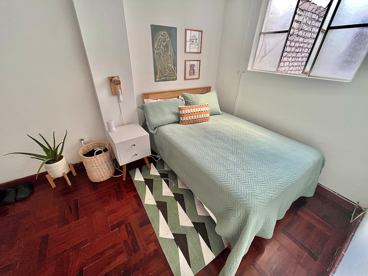 Willkommen in deinem neuen Zuhause in Lima! Moderne Wohnung mit einzigartiger Lage. 1 Block von Campo de Marte, Museo de Arte de Lima (4 Min.), Estadio Nacional (5 Min.), Parque de la Exposición (5 Min.) und Centro Histórico de Lima (10 Min.) entfernt. Wir bieten: Ausgestattete Küche, Utensilien, Kühlschrank, Reiskocher, elektrischer Behälter, Mixer und Mikrowelle Doppelzimmer: 2 Sitzer mit orthopädischer Matratze, privates Badezimmer und Kleiderschrank Sonstiges: Therma, Glasfaser, Streaming, 2 Fernseher, Wohnzimmer und Kabel.