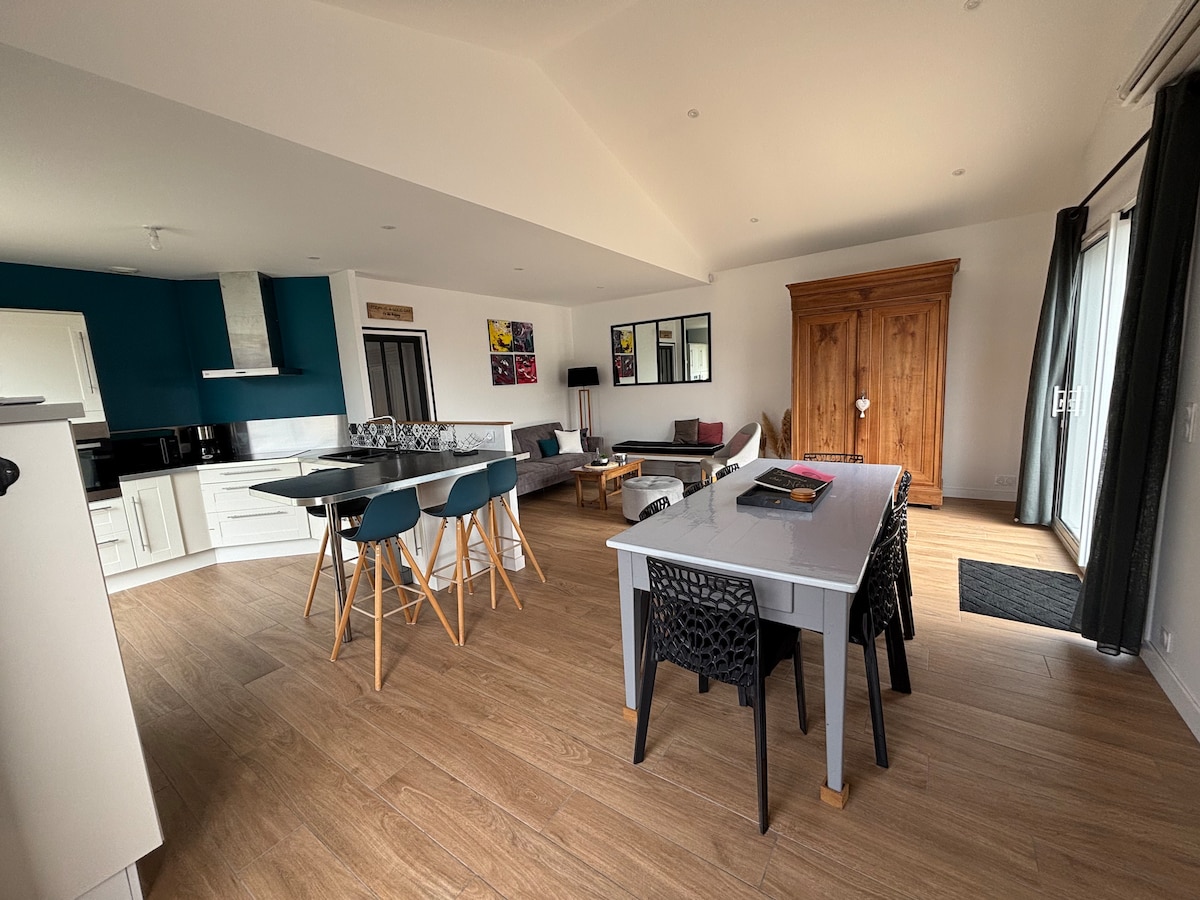 Mit den Füßen im Wasser, am schönsten Strand von Brétignolles s/ Mer, wurde diese geräumige Villa rund um das kubanische Thema eingerichtet. Die Villa Des Dunes liegt direkt am Meer mit einem außergewöhnlichen Blick auf die Fauna und Flora in einem unberührten Gebiet Kommen Sie und schreiben Sie Ihre nächste Geschichte mit der Familie oder mit Freunden, um einen einzigartigen Moment in einer einzigartigen Umgebung zu teilen! Neu im Jahr 2025! Kommen Sie mit dem Fahrrad auf den Radtouren. Bereitstellung von Fahrrädern in unseren Villen.* A & G
