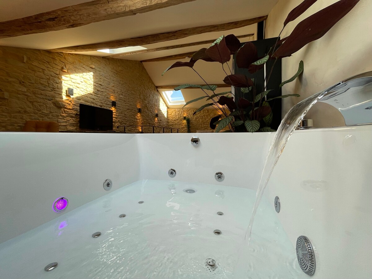 Si vous souhaitez vous détendre, vous reposer et faire une pause bien être, alors venez découvrir l Évasion en Ardennes !!! Notre logement est situé à Aiglemont, petit village calme, à 6 kms de Charleville-Mézières Vous pourrez profiter d un logement spacieux et très bien équipé.. En extérieur, vous pourrez disposer d une terrasse couverte et d une à ciel ouvert disposant d un jacuzzi privatif 5 places .. Venez bénéficier des bienfaits de ses massages… Et de notre nouvel espace sauna…