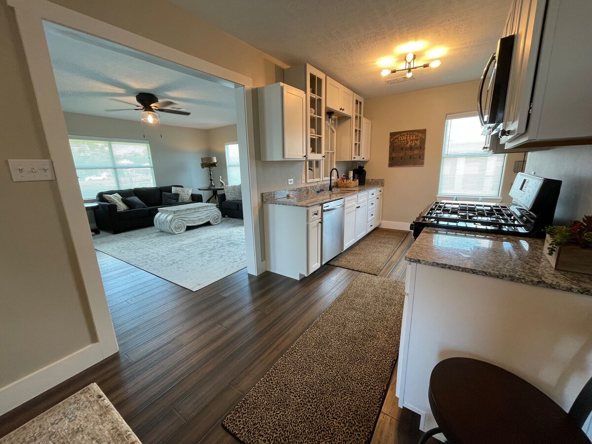 Genieße ein stilvolles Erlebnis in dieser zentral gelegenen Unterkunft. Günstig gelegen an der Texas Ave. (Highway 73) in der Nähe von Restaurants und Lebensmittelgeschäft. Nur wenige Gehminuten von Dominos und Hamburger Depot entfernt. Überdachte Vorder- und Hinterveranden mit Sitzgelegenheiten. Alle neuen Edelstahlgeräte und neue Sealy-Matratzen. Hartholzböden in allen Bereichen. Komplett im Jahr 2023 umgebaut.