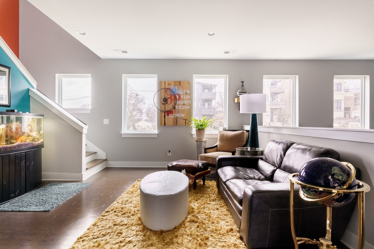 Willkommen in Freebird auf Fern! Genieße den besten Blick auf die Skyline von NASHVILLE!! Die Dachterrasse und die „Million Dollar“-Aussicht sind perfekt für den Musikstadt-Urlaub deiner Gruppe! Professionell gestaltet und dekoriert für alle deine Foto-/Insta-Bedürfnisse! Die privateste Dachterrasse im Komplex mit Feuerstelle im Freien! Endeinheit, die auf dem Hügel sitzt. › 2,6 Meilen zum Broadway › 2 Meilen zum Nissan Stadium › 2,5 Meilen nach Germantown › 5 Minuten zur Innenstadt von Nashville › 10 Min. zum Gulch › 15 Minuten zum Flughafen BNA