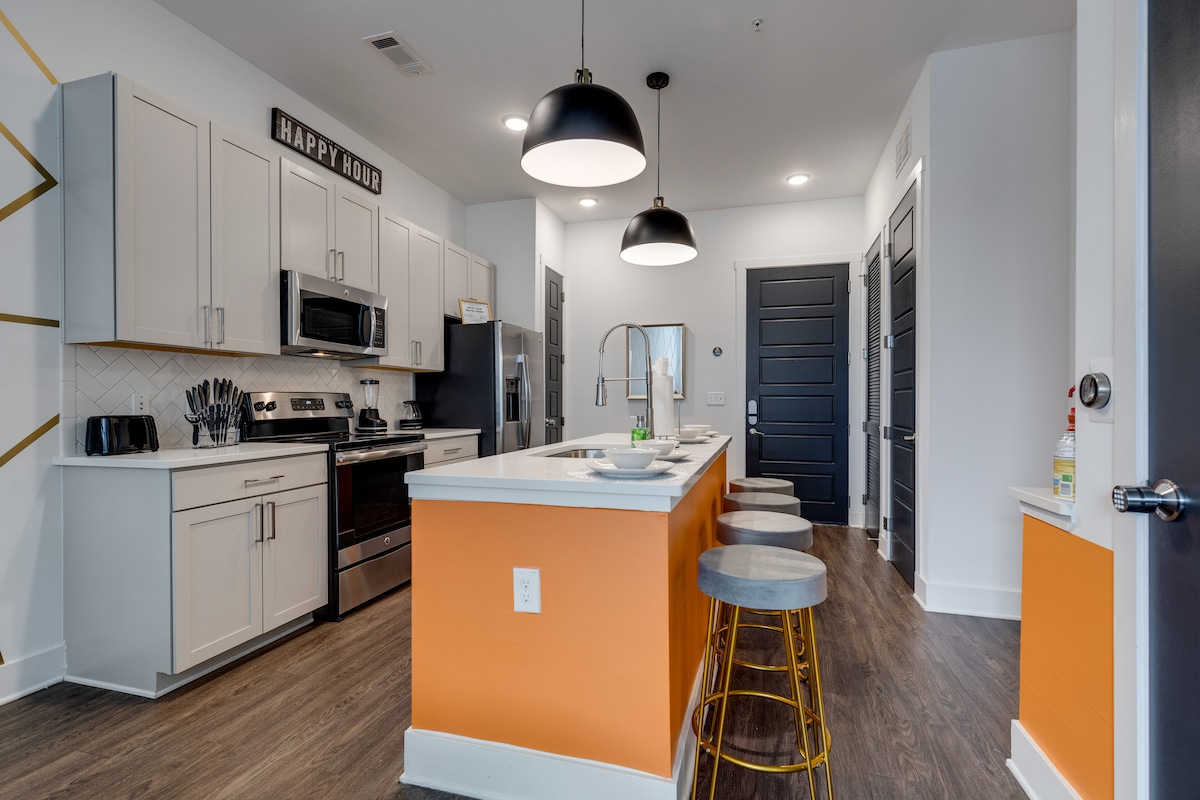 Immerse yourself in Nashville’s vibrant energy at this sleek one-bedroom condo, just moments from Broadway’s legendary buzz. This stylish luxe retreat masterfully blends sophisticated design with cozy comfort—ideal for romantic getaways or business travelers needing a polished, hassle-free base. Every thoughtful detail ensures a seamless, elevated stay, with iconic attractions, dining, and live music right at your fingertips.