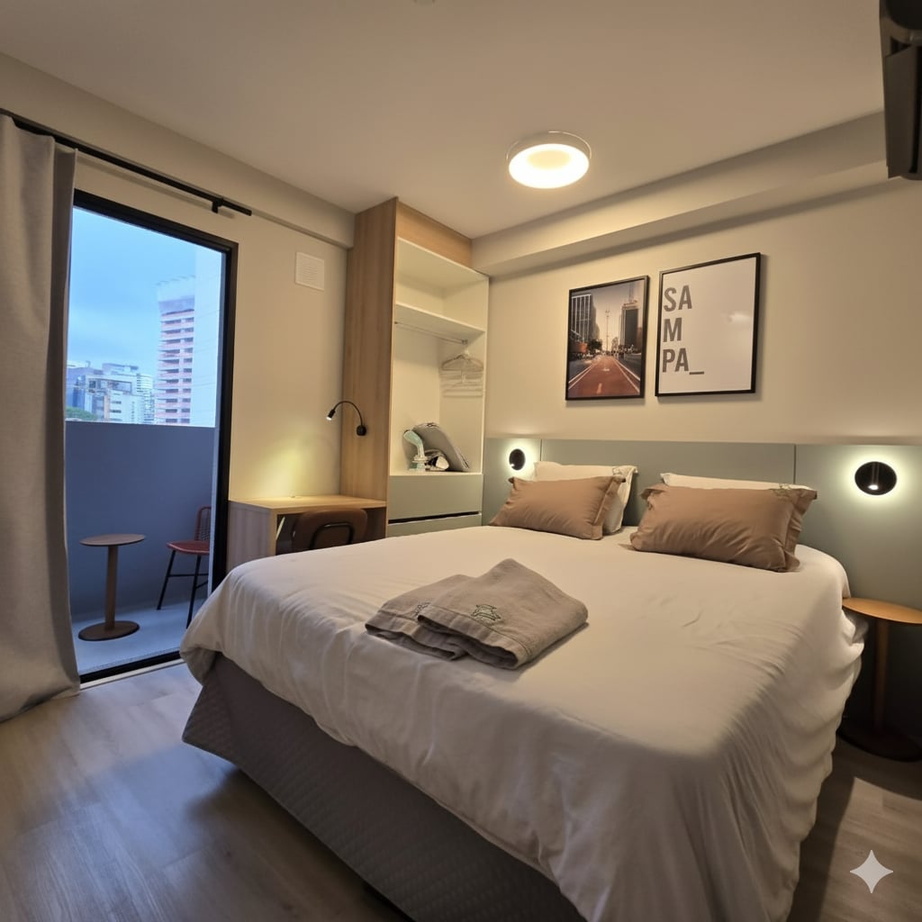 Studio NOVÍSSIMO vor dem Einkaufszentrum Frei Caneca, in der Nähe des Krankenhauses Sirio Libanes, Av. Paulista, Mackenzie, FGV, idealer Ort in SP für Geschäfte, Einkaufen oder Freizeit. Beheiztes Hallen-/Freibad und Solarium Fitnessraum Coworking-Space Wäscherei Minimarkt Voll ausgestattete Küche Nespresso Klimaanlage warm/kalt Spüle mit Zerkleinerer WLAN Smart-TV Hochwertige Bettwäsche und Handtücher Waschmaschine und Trockner Bügeleisen Haartrockner Glasbalkon Blackout-Vorhänge (automatisch) Elektronisches Schloss 24-Stunden-Rezeption
