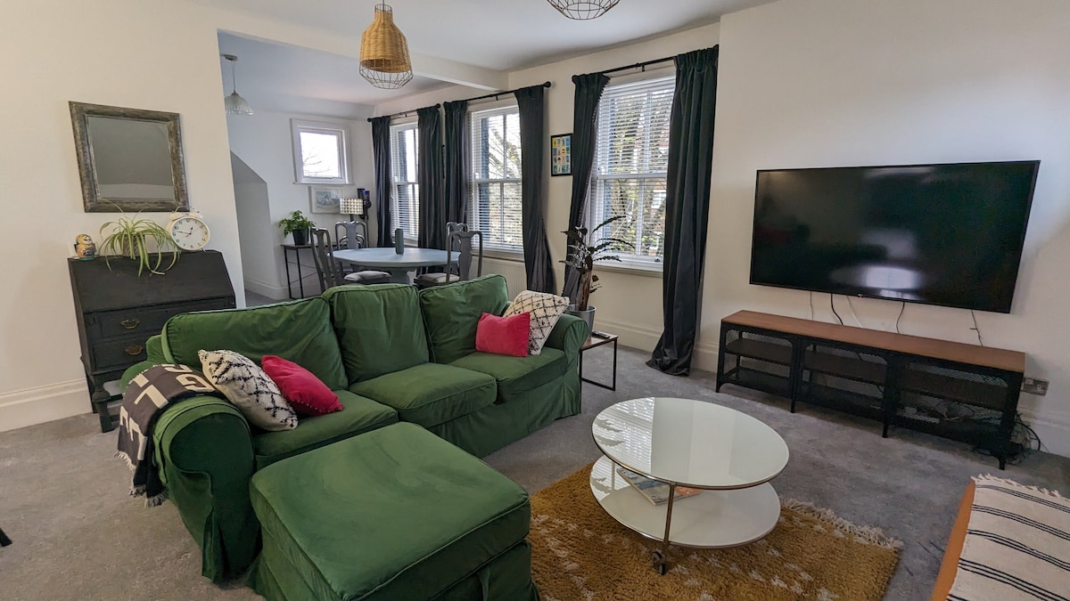 Helles und geräumiges Luxus-1-Schlafzimmer, viktorianische Dachgeschosswohnung in Uckfield. Ruhig und doch zentral zu den Geschäften und Restaurants der Stadt. Gemütliches und ruhiges Schlafzimmer mit Super-Kingsize-Bett. Offene Küche/Wohnzimmer mit einem Doppelschlafsofa und einem Queensize-Schlafsofa. TV. Schiebefenster mit schrägem Blick auf die South Downs. 1/2 Stunde Fahrt nach Brighton, Tunbridge Wells und Eastbourne für Strände, Klippen, Shopping & Stadtleben.