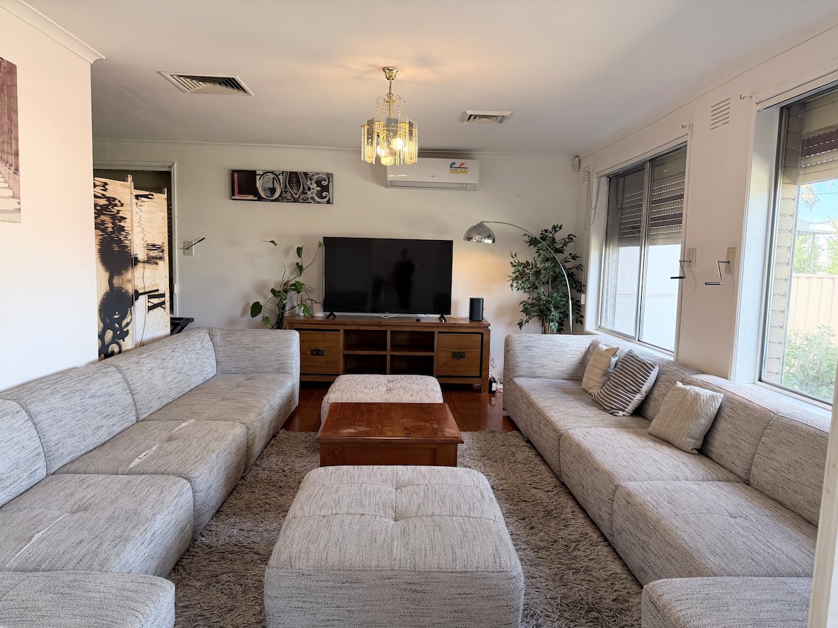 NACHRICHT FÜR LANGZEITAUFENTHALT-SPEZIALS. Egal, ob du einen Zwischenstopp vor deinem Flug oder einen längeren Aufenthalt für eine große Familie benötigst – wir haben alles für dich. Schönes 5-Schlafzimmer-Haus (brandneue Teppiche) mit 3 Wohnzimmern, 3 Badezimmern und einem Spielzimmer! Wir sind nur 5 Minuten vom Flughafen Melbourne, 15 Minuten vom CBD von Melbourne und 4 Minuten vom berühmten URBN Surf entfernt! Wir bieten super bequeme Betten und Bettwäsche sowie kostenloses Netflix und Prime TV, komplett mit superschnellem NBN. KEINE PARTYS, EVENTS ODER HAUSTIERE