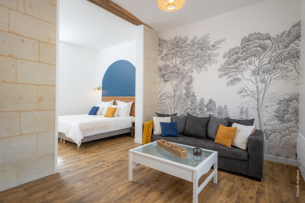 Nur einen Katzensprung vom alten Hafen von Thoureil entfernt, freuen wir uns, Sie in unserem Gästezimmer begrüßen zu dürfen. Genießen Sie eine ungewöhnliche Nacht im Herzen der legendären Troglodyten. Lassen Sie sich von den Skulpturen aus Tuffstein, den Fliesen, dem Travertin verführen, eine Reise durch Rohmaterialien.