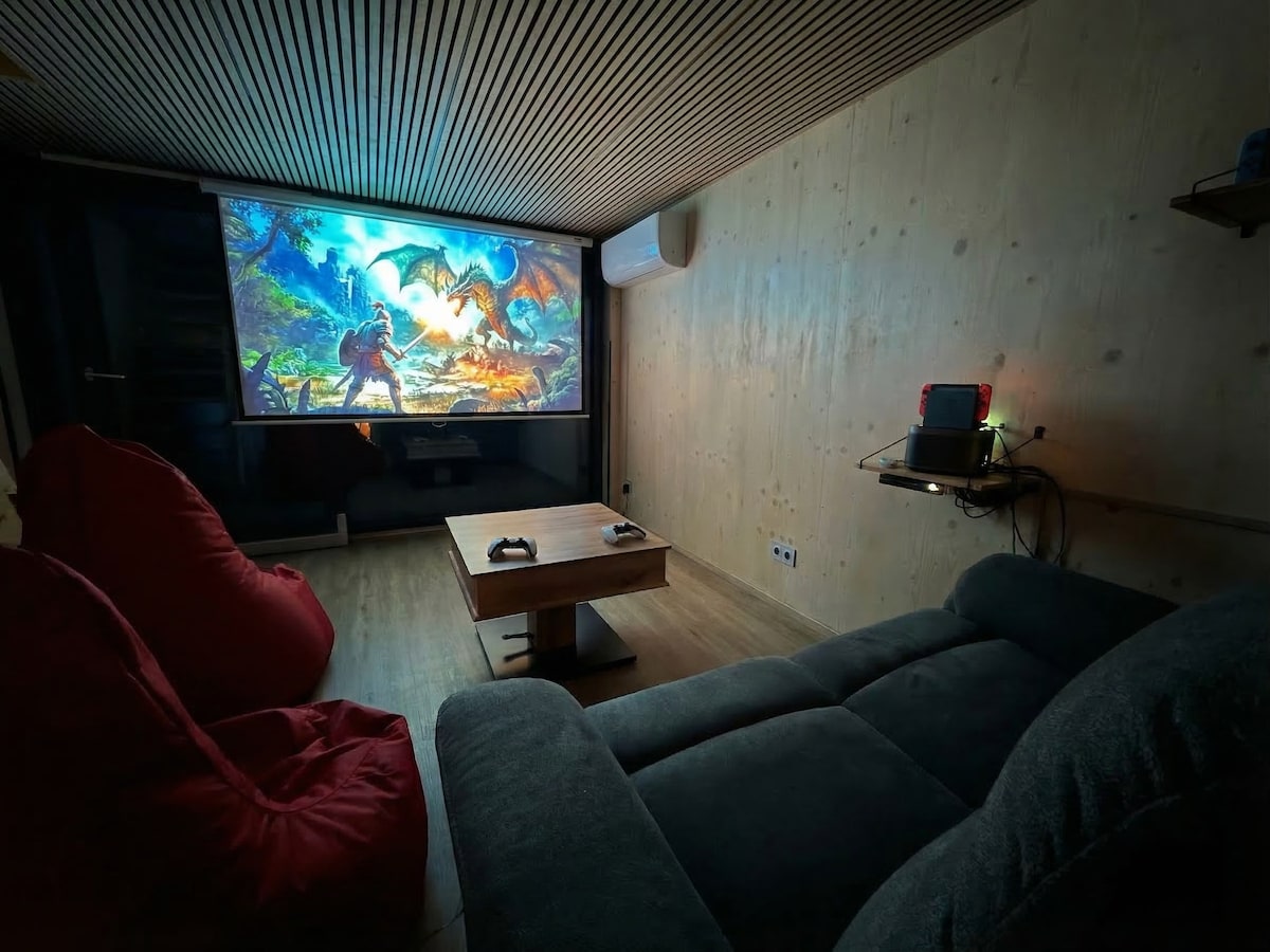 Welcome to our solar-powered entertainment cabin in Brno, an eco-friendly getaway where you can enjoy comfort while being kind to nature. Enjoy the hot tub after a long day, watch movies on the large projector screen with freshly made popcorn, or play games on the PS5. A cozy modern cabin with a big terrace for brunches, BBQs, or peaceful evenings under the stars — while still enjoying the convenience of the city, with restaurants, groceries, and delivery services available nearby.