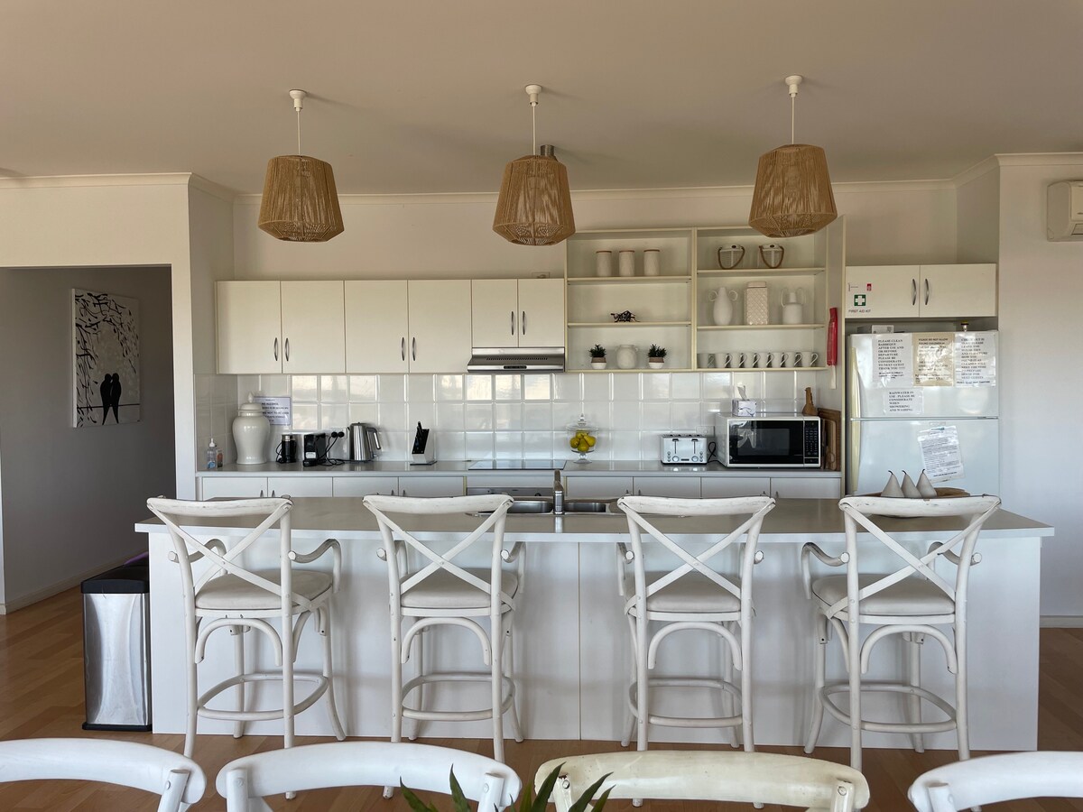 Schau dir unsere neue Schwester-Unterkunft an: https://www.airbnb.com.au/rooms/951596004600270574? Das Kap liegt versteckt auf dem Hügel und bietet einen atemberaubenden Panoramablick auf die Emu Bay. Dieses stilvolle Haus verfügt über 4 Schlafzimmer mit luxuriöser Bettwäsche, 2 Badezimmer und einen wunderschönen Wohnbereich, der auf eine große Terrasse fließt. Der atemberaubende Blick auf die Bucht und darüber hinaus der Capes ist ein Paradies für diejenigen, die mit einem Spritzer Meeresluft Ruhe und Frieden suchen. Minimale Umweltauswirkungen : Solarmodule & Sammlung von Regenwasser.