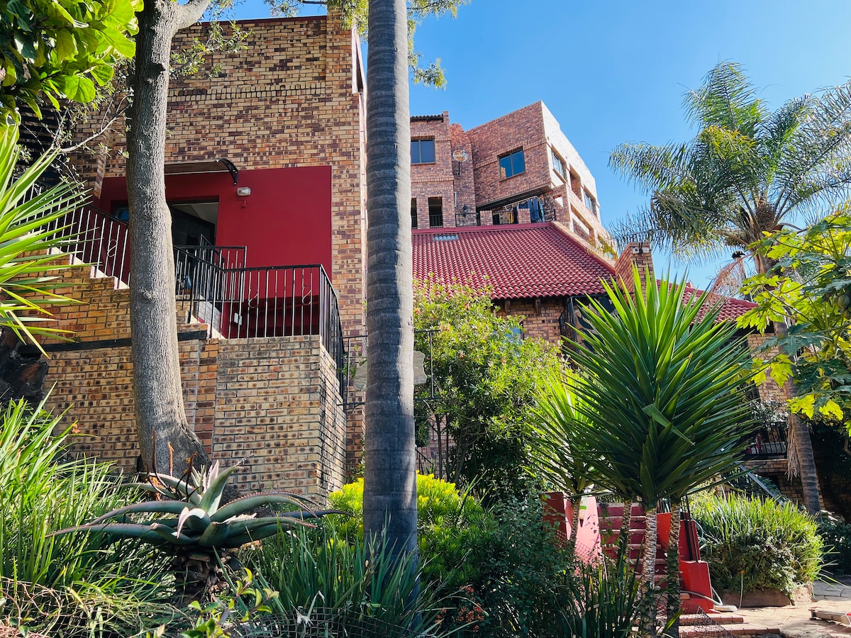 In einer ruhigen Gegend in Bryanston East gelegen, 7 Selbstversorger-Suiten mit separaten Eingängen und privaten Terrassen, einschließlich Wasserkocher-Braais, die Gäste nach Belieben nutzen können. Maximal 2 Personen pro Einheit. Ideal für Geschäftsleute, die ein zweites Zuhause suchen, in der Nähe von Sandton, aber außerhalb der Stadt. Der grüne Vorort Bryanston beherbergt die Suiten, wir befinden uns in einer umzäunten Anlage mit Sicherheitspatrouillen rund um die Uhr.