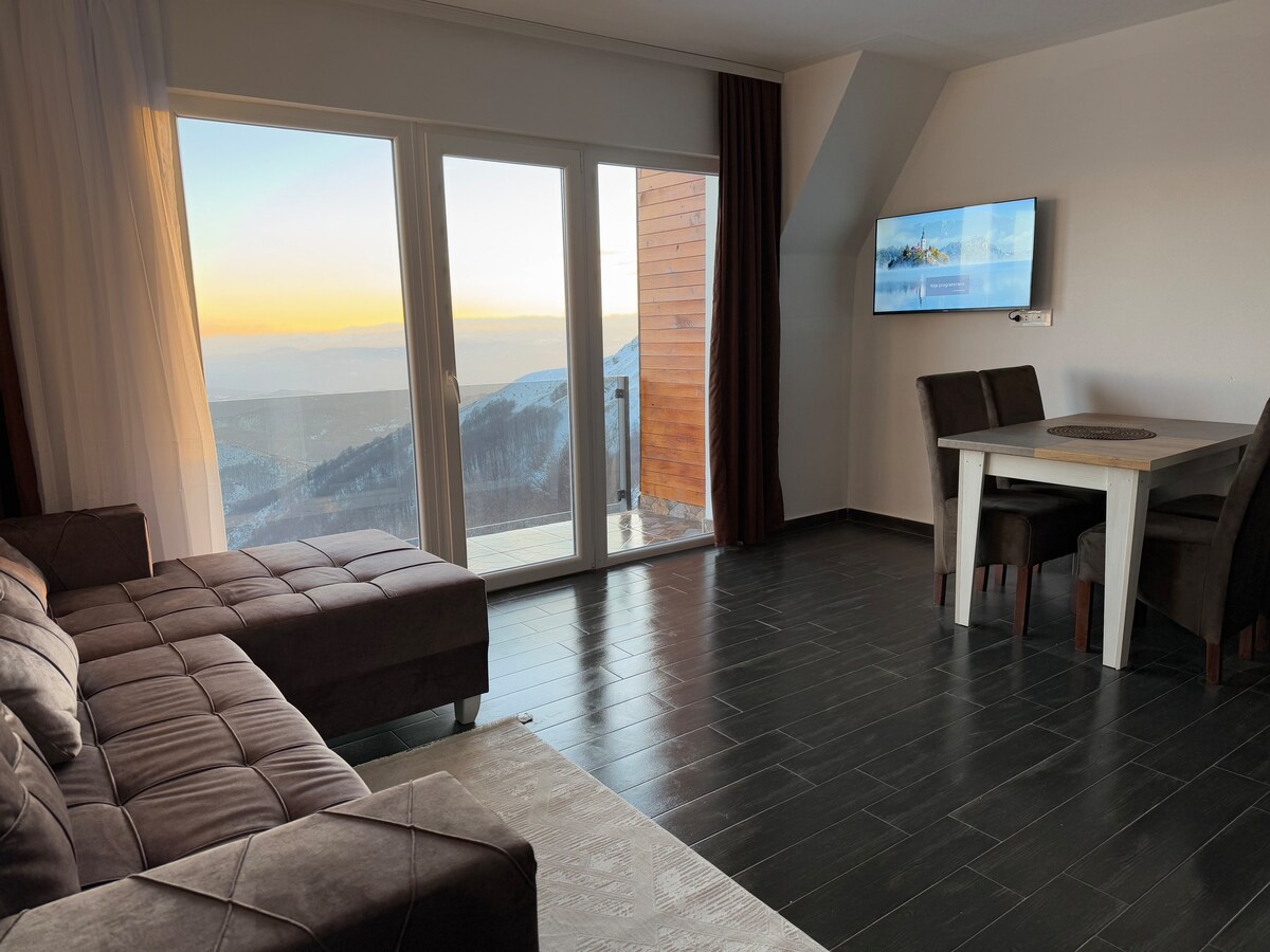 Ein moderner Bergurlaub in Kopaonik! Dieses gemütliche Apartment verfügt über ein stilvolles Wohnzimmer mit einer voll ausgestatteten Küche, einem komfortablen Schlafzimmer und einem modernen Badezimmer. Genieße den atemberaubenden Blick auf die Berge und atemberaubende Sonnenuntergänge bequem von deinem Aufenthalt aus. Nur 450 m vom nächsten Skilift entfernt, ist er der perfekte Ort für Ski- und Naturliebhaber gleichermaßen. Egal, ob du Abenteuer oder Entspannung suchst, dieses Apartment bietet den idealen Ausgangspunkt für dein Kopaonik-Erlebnis