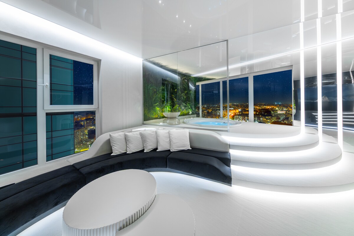 Apartment 23. Etage, Jacuzzi mit Blick auf den Fluss