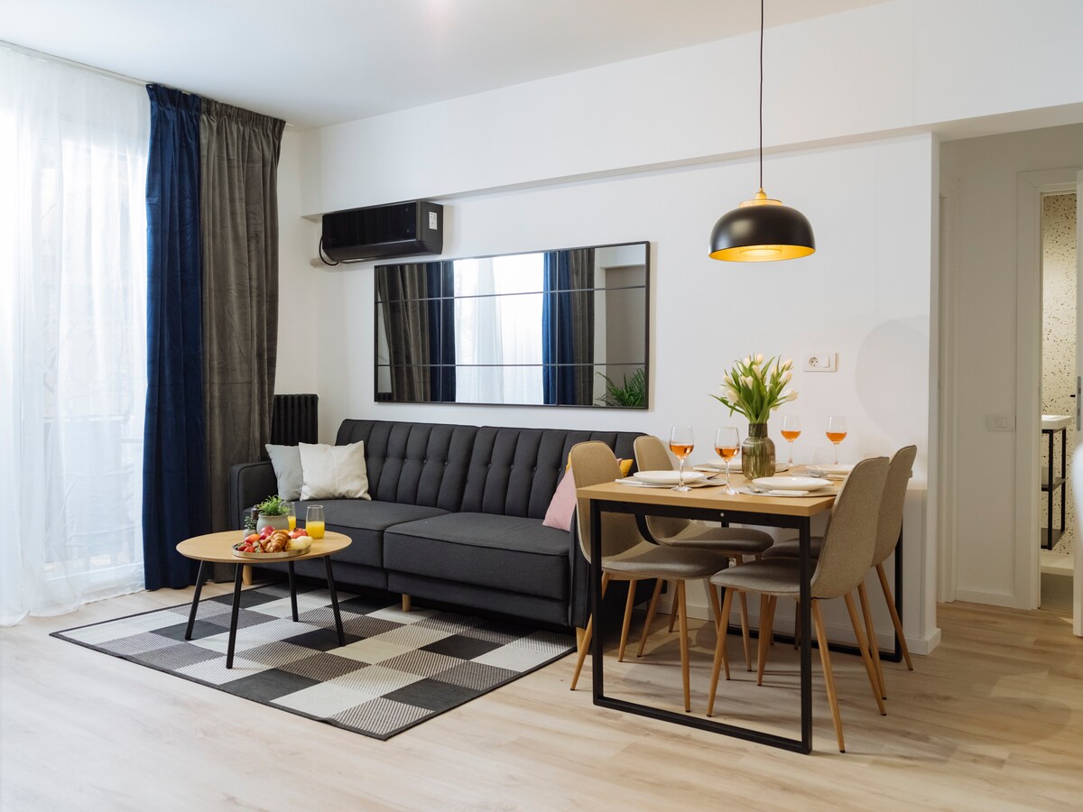 Schöne Wohnung mit zwei Schlafzimmern im Zentrum von Bukarest. Nur einen kurzen Spaziergang vom Universitätsplatz (3 Min.) und der Altstadt (7 Min.) entfernt. Der Wohnzimmerbereich ist offen und verfügt über ein bequemes Sofa, einen schönen Essbereich und zwei Sessel. Voll ausgestattete Küche mit hochwertigen Geräten. Zwei Schlafzimmer mit bequemen Betten, viel Stauraum und einem eigenen Arbeitsbereich. Die Unterkunft befindet sich in einem sehr soliden und ruhigen Gebäude aus den 80er Jahren, das zu deinem Komfort und einer guten Nachtruhe beiträgt. Jetzt buchen und deinen Aufenthalt genießen!