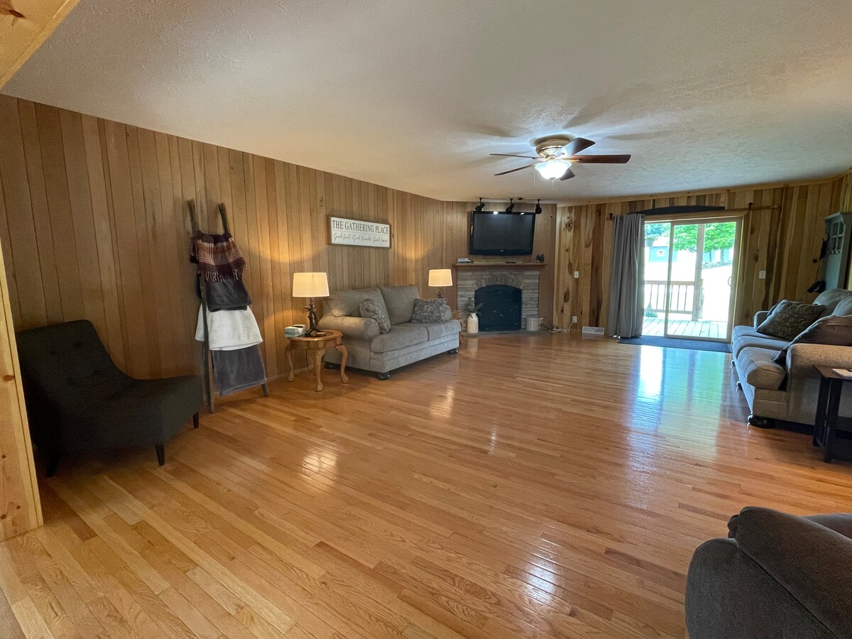 Gesamt-Upgrade 2022. Hinzugefügt 2nd Master Suite, große Deck-Erweiterung und alle neuen Edelstahl-Geräte. Familienurlaub oder eine Oase für Erwachsene. Du entscheidest. Erstaunliches Ferienhaus am Buckhannon River. Wunderbare Aussicht, tolle Wanderungen, tolles Angeln und jede Menge Outdoor-Aktivitäten. Zum Schutz und zur Sicherheit der Gäste haben wir eine Klingel an der Haustür unseres Ferienhauses installiert.