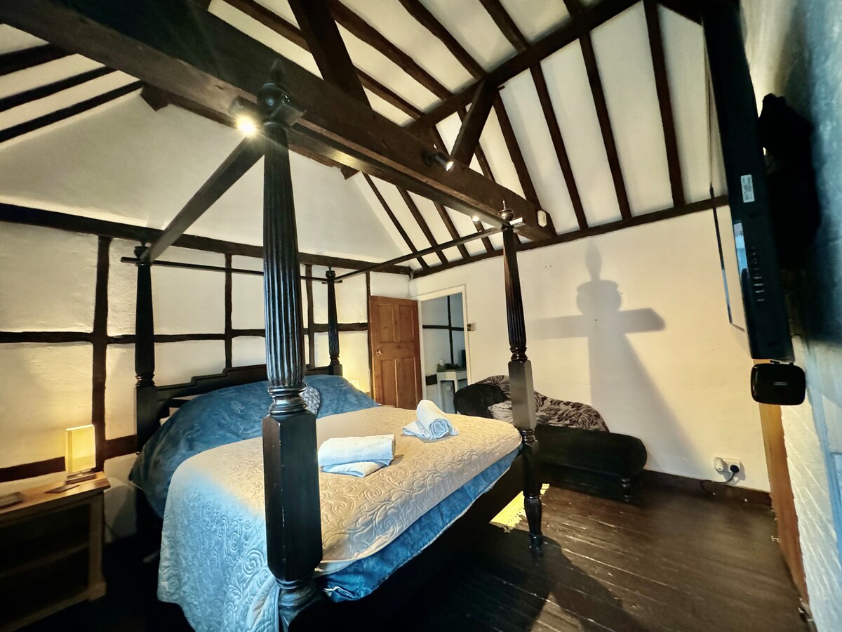 Spektakuläres, ruhiges, ländliches Ferienhaus. Dieses Ferienhaus verfügt über ein großes Maisonette-Zimmer mit einem Super-Kingsize-Bett und ein Zimmer im Erdgeschoss mit zwei Doppelbetten, ideal für bis zu 4 Kinder, die sich teilen können, oder zwei Erwachsene, die Doppelbetten bevorzugen. Das Badezimmer verfügt über eine Badewanne mit einer Dusche. Es gibt eine voll funktionsfähige Küche/Esszimmer. Viele Spaziergänge in der Nähe entweder zu den Pubs in Little Missenden, Penn Woods und Penn Street oder weiter nach Old Amersham. Gemeinsame Nutzung eines großen Gartens und Tennisplatzes.