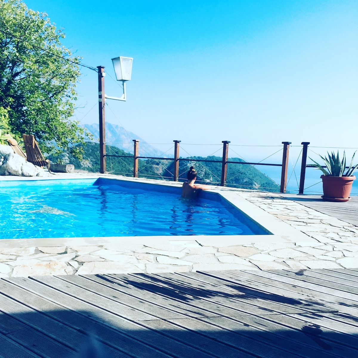 Located right above old town, you will have no other choice than to relax with STUNNING views of the adriatic coast. Relax apartment is fully equipped with all you need to enjoy a quiet yet close location to budva craziness. Internet, satellite tv, parking, pool is all there to have you enjoy. The apartment is 43m2 with a private 57m2 terrasse with hammock chair, sun lounge chairs and dining area. No parties allowed. Pool is open from May to October