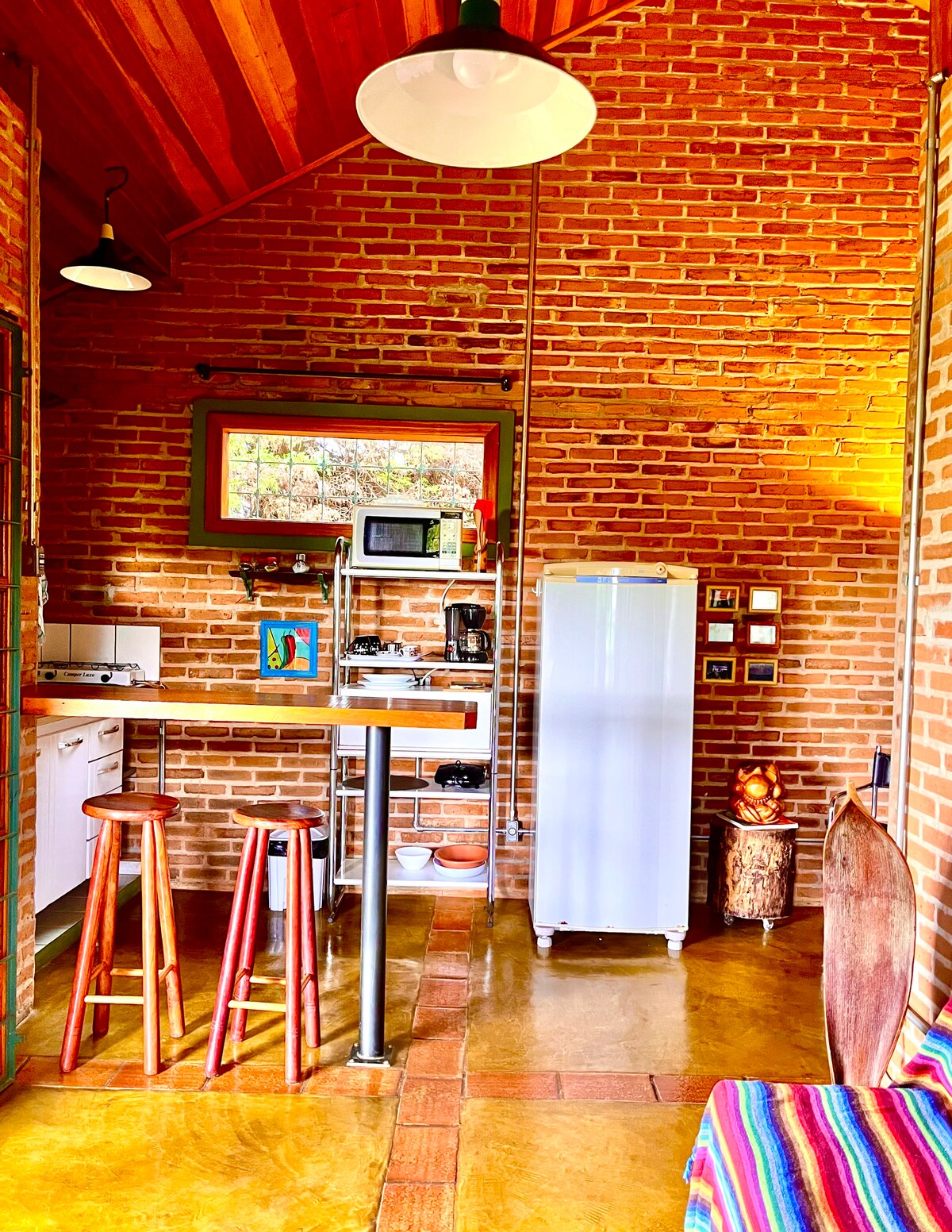 A perfect retreat in nature. The Vale do Cipó site features a hammock, barbecue grill, fire pit, picnic area, and deck for relaxing among the trees of the Atlantic Forest. A fully equipped kitchen and clean linens and towels are provided for your comfort. It's located 250 meters from the road, making it easy to access even on rainy days. The house has a private stream 30 meters away and is frequently visited by squirrels, butterflies, various birds, and many fireflies. Fenced grounds for pets.