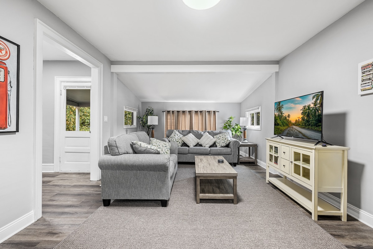 **Dies ist ein Inserat für eine gesamte Unterkunft. Es wird sonst niemand im Haus sein.** Genieße ein stilvolles Erlebnis in diesem zentral gelegenen Einfamilienhaus. Mit einer renovierten Küche, Klimaanlage im Erdgeschoss, Hauptschlafzimmer, Gäste-Schlafzimmer und Dachboden (Mai–September). Das hochmoderne Badezimmer verfügt über eine ebenerdige Dusche mit 2 Regenduschenköpfen, 1 extra tiefe Badewanne, Fußbodenheizung, Marmor-Arbeitsplatten und Bidet. Draußen hast du eine große hintere Veranda, die einen Whirlpool und Lichterketten umfasst, die du während des kühlen Buffalo-Abends genießen kannst.