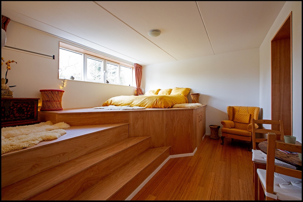 Bereit für die ultimative Entspannung in einer Stadt, in der es immer etwas zu tun gibt? In Amsterdam Noord, im kreisförmigen Viertel Buiksloterham, dem neuen „Place to be“ von Amsterdam, finden Sie das Studio, eine Oase der Ruhe für Besucher des pulsierenden Amsterdams. Das helle Studio verfügt über einen eigenen Eingang und befindet sich an einem kleinen „japanischen“ Innengarten. Wenn Sie die Schiebetür öffnen, befinden Sie sich im Garten. Im gemütlichen, ruhigen Zimmer befindet sich ein Queensize-Bett. Das Badezimmer und die Suite befinden sich ebenfalls am Innengarten.