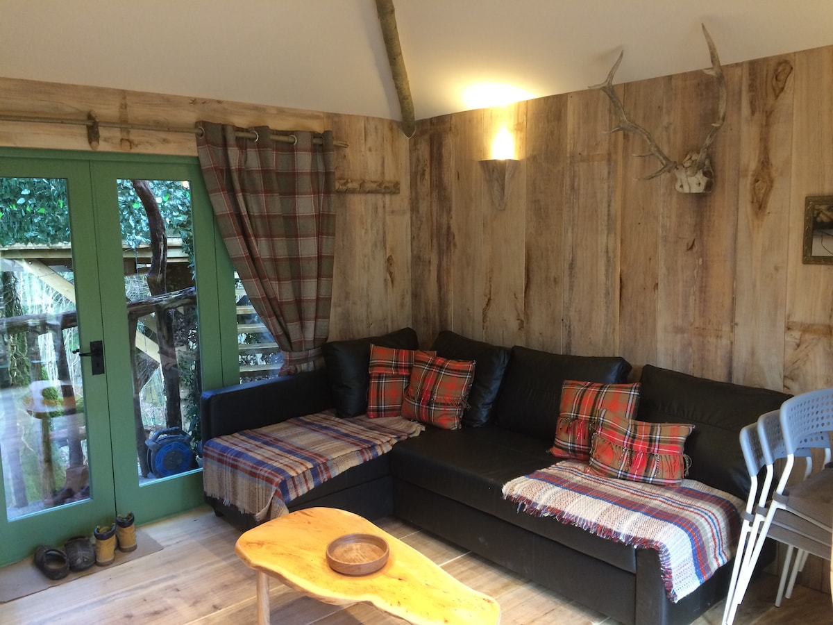 Ländlicher Rückzugsort in einer Holzhütte in Mittelwales
