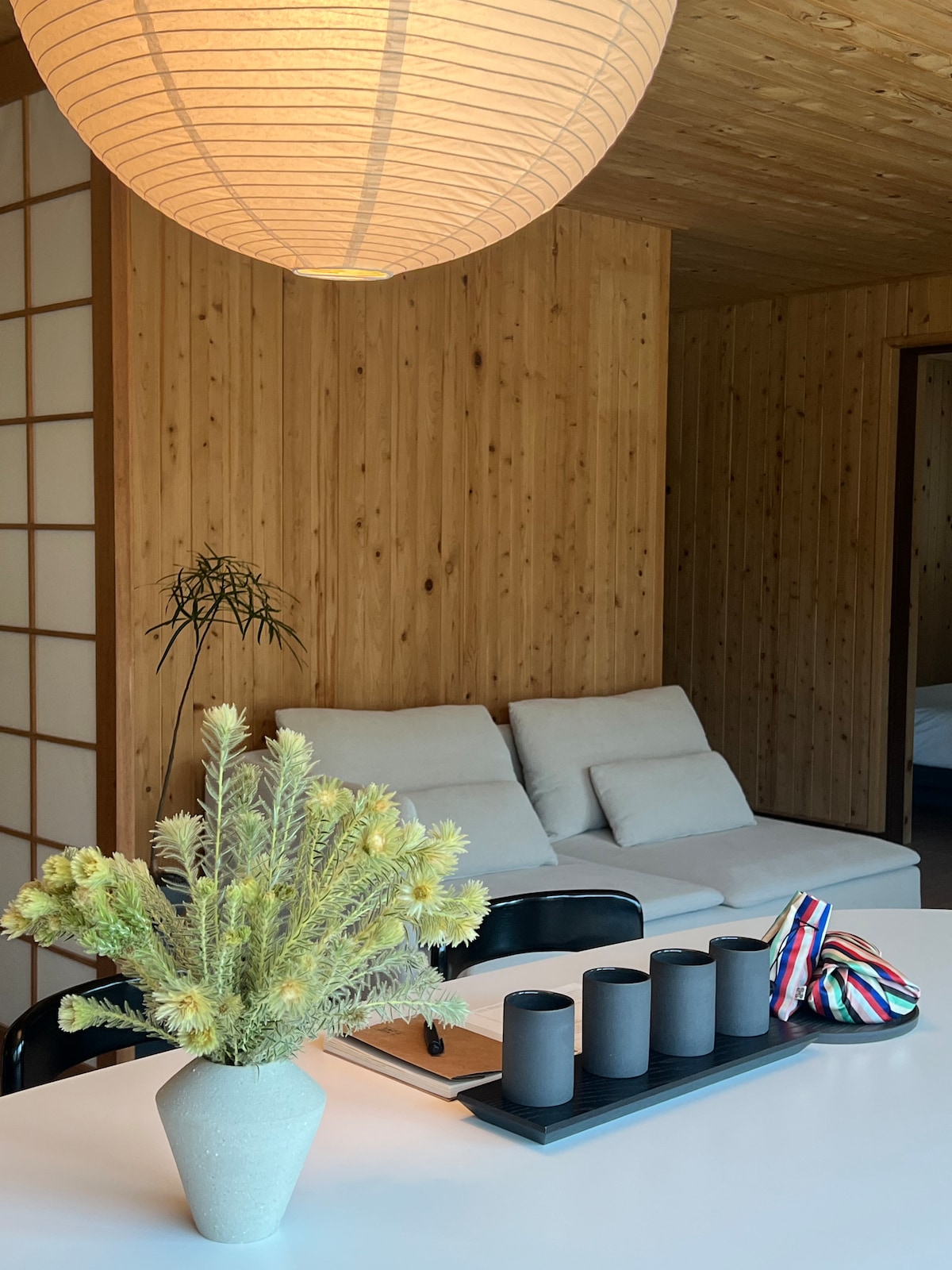 Die Bedeutung von INN STAY 1. INN bedeutet auf Englisch eine Hütte oder ein Gasthaus auf dem Land, in dem Übernachtungen möglich sind (in einer Unterkunft übernachten). 2. Wenn man INN als koreanisches Schriftzeichen ausspricht, dann wie das Wort für Mensch (). (Eine Person bleibt) 3. Das englische Wort "in" (In einem Aufenthalt) INN STAY hat drei Bedeutungen. Die Unterkunft ist für 2 Personen ausgelegt, aber Sie können die gesamte Fläche von 83m², einschließlich der Terrasse, für sich allein nutzen. Das Gebäude wurde mit Blick auf die Berge gebaut. Die Kombination aus kaltem, exponiertem Beton und dem natürlichen Gefühl des Korkeichen. Die Innenausstattung ist warm und luxuriös, um die Wärme und den Luxus zu betonen, und ist mit Edelstahl und Holz ausgeführt. Das Inn Stay ist nicht nur eine Reise, sondern das Inn Stay Ich hoffe, dass es das Ziel der Reise wird, und ich habe es gebaut. Die Bauzeit betrug 1 Jahr und 2 Monate. Wir hoffen, dass die wunderschöne Aussicht auf die Berge und den Garten, die man von innen genießen kann, für einen Moment aus dem Alltag entfliehen und Heilung finden.
