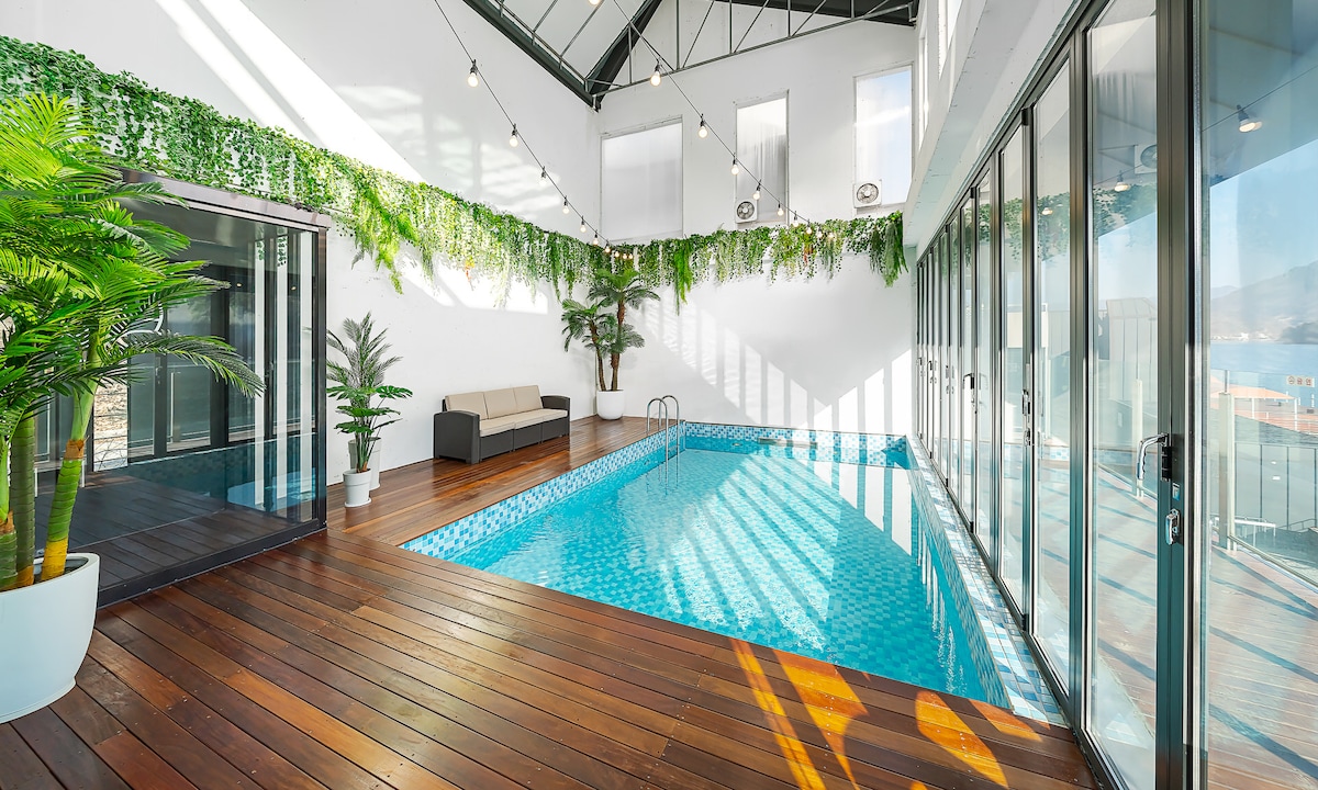 프라이빗 실내 온수풀과 감성 불멍존을 가진 양평이웃스테이 2호