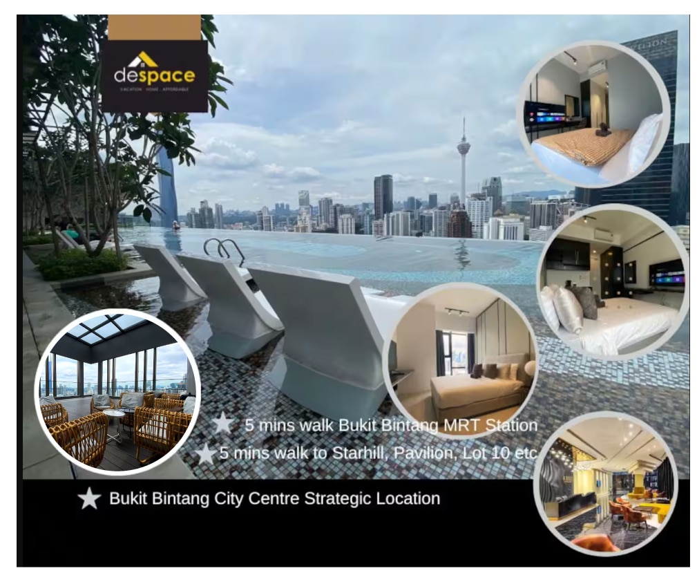 1BR Suite im KL Golden Triangle! Zentral gelegen, 5-10 Minuten entfernt von: • Berühmte Einkaufszentren in der Gegend von Bukit Bintang - - Berjaya Times Square, LaLaport BBCC - Pavillon, Starhill - Lot 10, Sg Wang - Suria KLCC • Changkat Bukit Bintang Barstraße • Jalan Alor Food Street • KL Tower • Chinatown • Monorail & LRT (Hang Tuah Station) • KL Busbahnhof (Pudu Sentral) Unsere Unterkunft ist sehr gut für Familien, Paare oder eine Gruppe von Freunden geeignet. Unsere Infinity-Pools bieten einen Blick auf den atemberaubenden Merdeka 118 Tower.