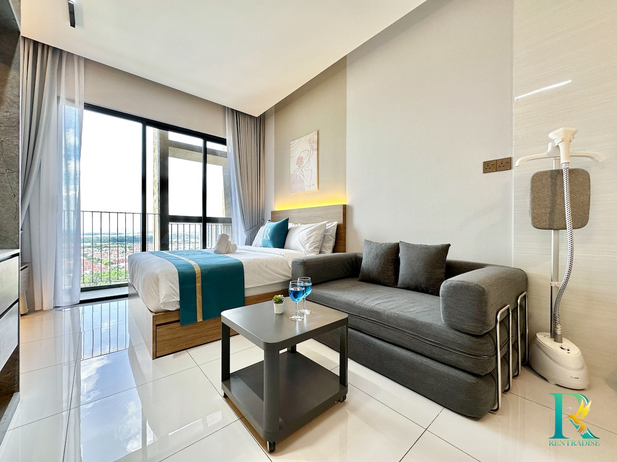 ✨ Kick back and relax in this newly refurbished calm, stylish space. ✨ Chic studio retreat for 2 - steps from Paradigm Mall! Enjoy a separated bedroom, private balcony, and modern comforts, all while having shopping, dining, and entertainment right at your doorstep. Easy access to Johor Bahru city & other township around Skudai area and the Singapore causeway makes this the perfect base for work or play!