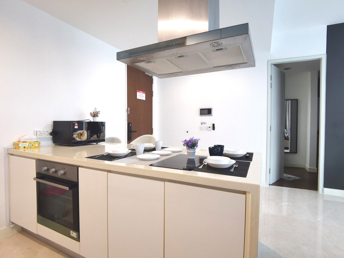 Luxurious spacious 3-Bedrooms unit with Bathtub! Premium quality King & Queen size Beds that guarantee good sleep here with amazing Midvalley Southkey Mall view! Main Highlight! -Private Bathtub -65" Smart TV with YouTube and Netflix apps -Pool Table -Retro Game Console -Drinking water Dispenser Surround with shopping mall & wide range of local tasty food - 2 mins drive to Midvalley Southkey JB - 5 mins to KSL City Mall - 8 mins to City Square Mall & Custom JB