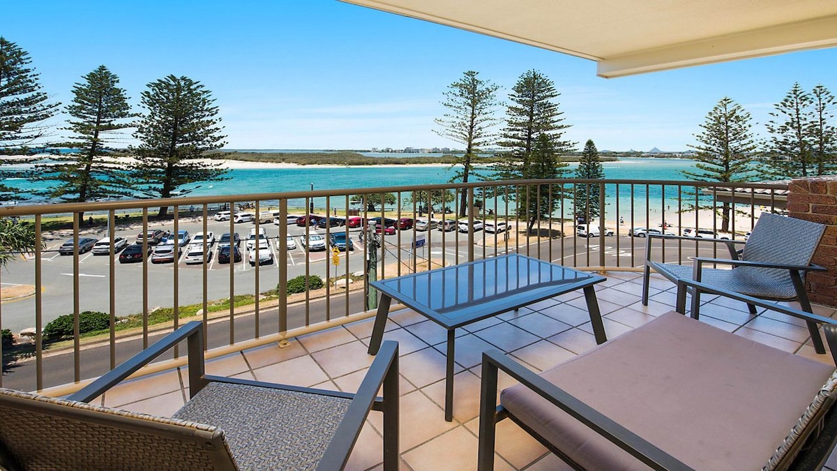 Absoluter Strand Happy Days @ Kings Beach # Warum wir es hier lieben: • Eine der dem Surf am nächsten gelegenen Wohnungen an der Sunshine Coast • Parke das Auto und gehe überall hin • Beobachte vom Balkon aus, wie die Kinder surfen und Strandcricket spielen • Fantastische Cafés und Märkte • Atemberaubende Aussicht auf die Inseln Moreton und Bribie • Zu Fuß zu 7 Eisdielen • Ozeanpool, Kino, Bowling in der Nähe • Schöne Spaziergänge die Küste hinauf und hinunter von deiner Haustür aus