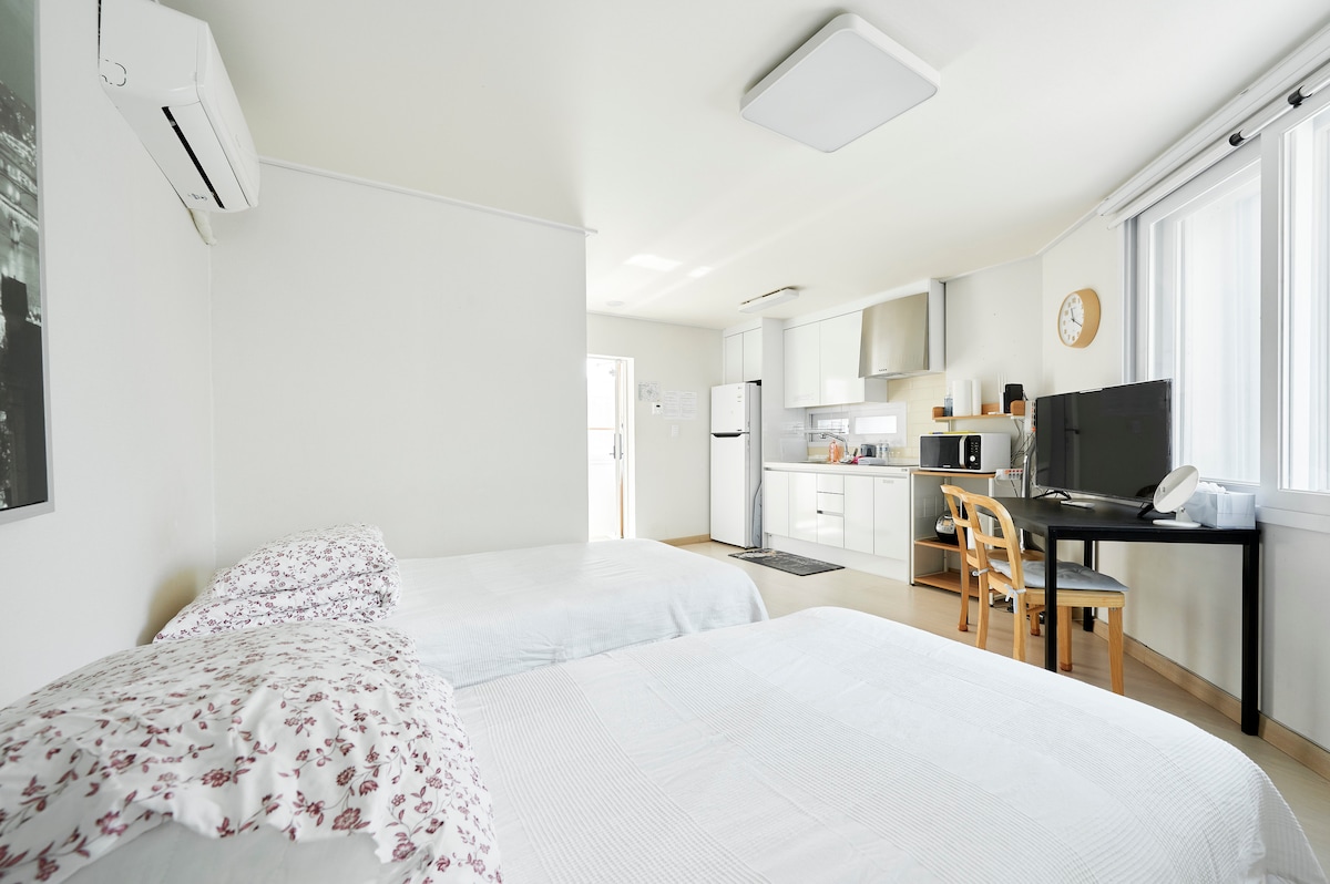 🏡 In Pangyo Daejang-dong New Town, ruhig und luftig die erste Etage eines neu gebauten Gewerbehauses Es handelt sich um ein sentimentales Studio mit zwei Zimmern. - Außenparkplätze stehen im ersten Stock des Gebäudes selbst zur Verfügung, Es gibt zwei Zimmer und zwei Betten, also wenn du ein mittel- bis langfristiger Gast für Familien mit Kindern und Gäste mit Hunden bist Es ist der beste Ort :) - Der ruhige, aber sinnliche Stil des weißen Tons Genieße Musik, Filme und entspanne dich in deinen Wohnräumen