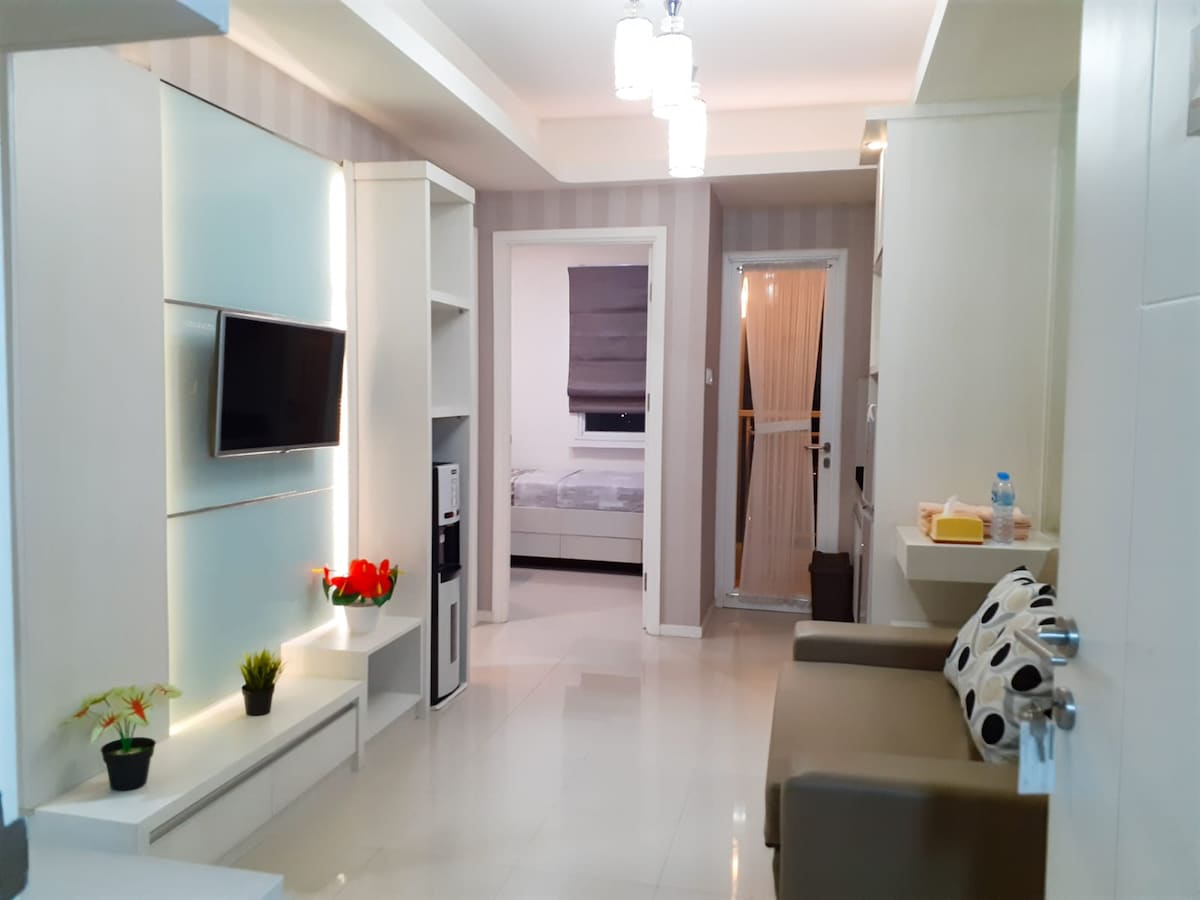 Immerse yourself in the vibrant heart of Bandung at this stylish studio on 10th floor of Parahyangan Residences. Enjoy modern amenities like a fully-equipped kitchen, high-speed Wi-Fi, and a 50" smart TV with Netflix. Indulge in resort facilities, contactless check-in, and nearby conveniences for a perfect staycation, holiday, or work-from-home experience. Now featuring a Reverse Osmosis drinking water, food waste disposal and new washing machine.