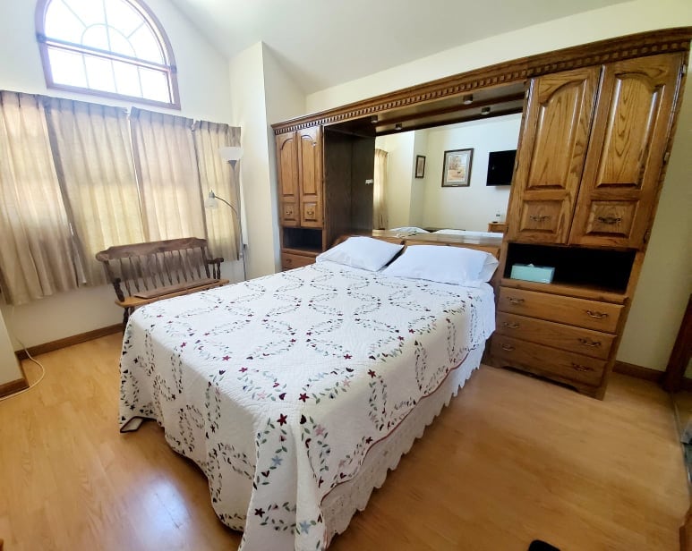 Eine entspannte Lage, um von diesem zentral gelegenen Ort aus einfachen Zugang zu allem zu genießen: Hochzeitslocations, Familie, Parks und landwirtschaftliche Erlebnisse. Gesichertes Schlafzimmer mit einem Queensize-Bett im zweiten Stock. Das Badezimmer wird mit anderen Gästen geteilt. Hinweis für Allergien: Ich habe 2 Katzen, die zufällig bei mir gelandet sind. Sie teilen sich das Haupthaus, wenn keine Gäste anwesend sind. Wenn ein Gast eingeplant ist, wird er in einem separaten Wohnbereich untergebracht. Sie haben keinen Zugang zu den Quest-Räumen.