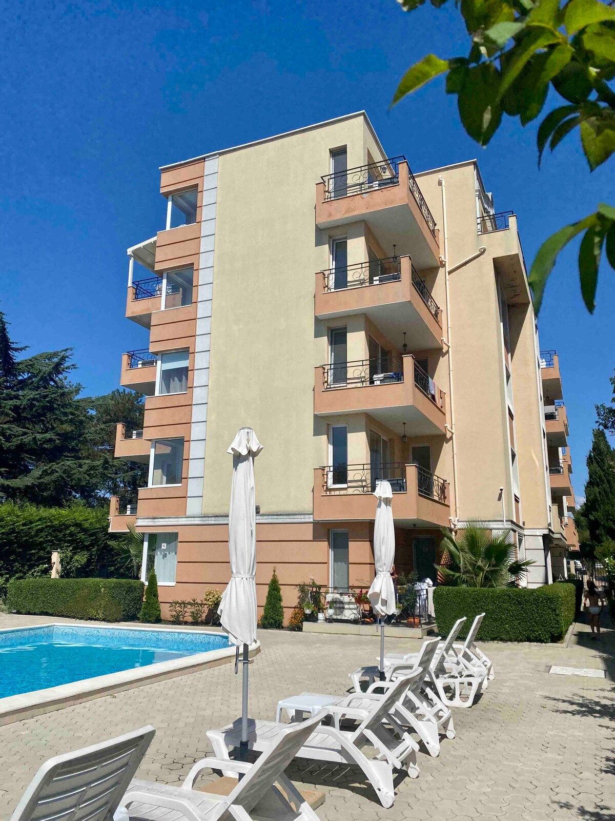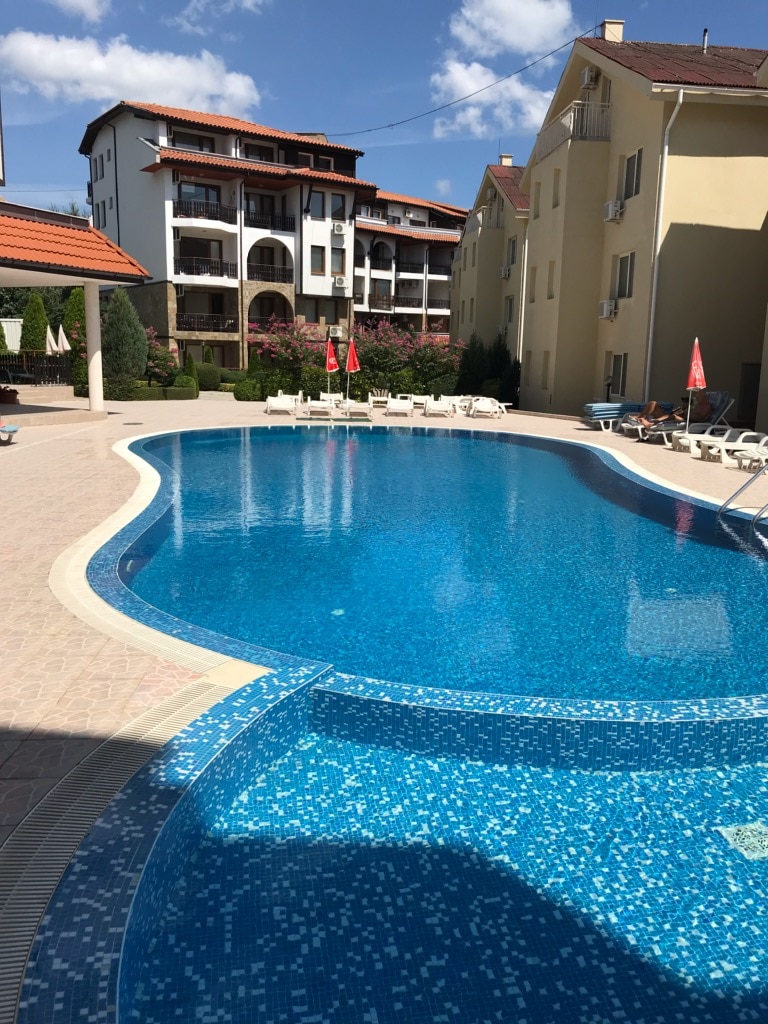 The apartment is situated in the Sunny Beach resort. The beach is only 450m away. Busy district, easy access to main street and the centre with all the communications and places. The popular aquapark is not far. The apartment is fully furnished and equipped, has OWN SEPARATE exit to the swimming pool. The territory is under security. The park zone is nearby, as well as 24/7 supermarket, public transport. To the Nessebar Old town - 10 minutes by bus.