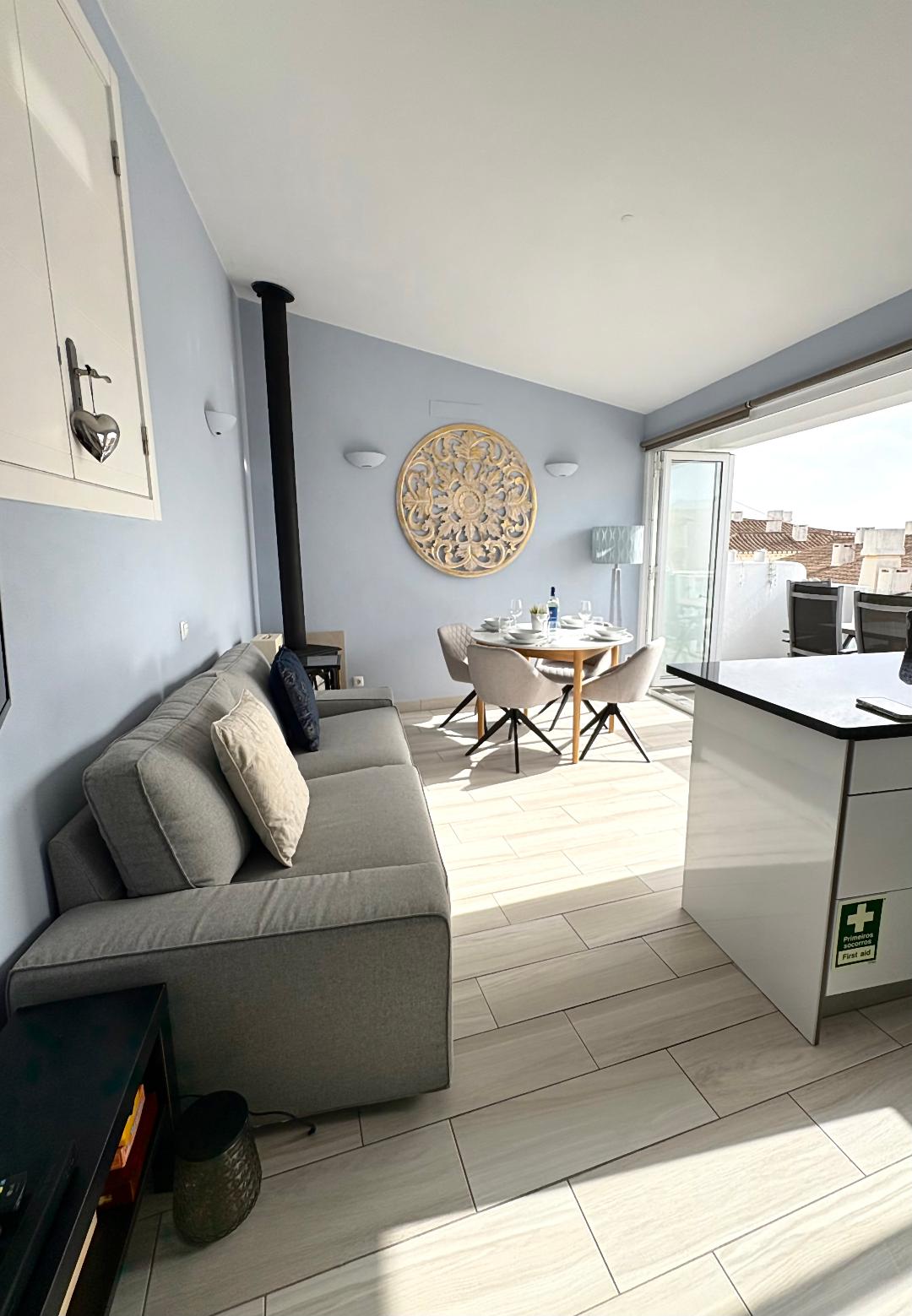 Very beautiful apartment for 4 guests, right in the heart of the typical Portuguese fisherman's town of Burgau. Enjoy the stunning ocean view from our balcony and fall asleep to the sound of the waves. Only 3 minutes walking distance to the beach. The apartment is located on the 3d floor. The rustic exterior belies the stunning interior. Enjoy the perfect vacation surrounded by the charm of this wonderful beach village.