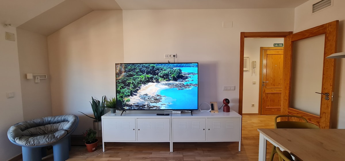 Kleine Wohnung in der ersten Reihe des Stausees mit herrlichem Blick in einer privaten Wohnanlage im Stausee von San Juan, direkter Zugang zum Stausee und seinen Privatstränden (nur 3 Minuten zu Fuß). Zugang zu idealen Stränden für alle Arten von Aktivitäten...Kajak, Paddelsurfen, Wasserski, Klettern, Segeln, Angeln, etc. Privatparkplatz, super ruhige Gegend. Klimaanlage, Netflix und Glasfaser-WLAN Es ist ein gewöhnliches Haus, keine Touristenwohnung.