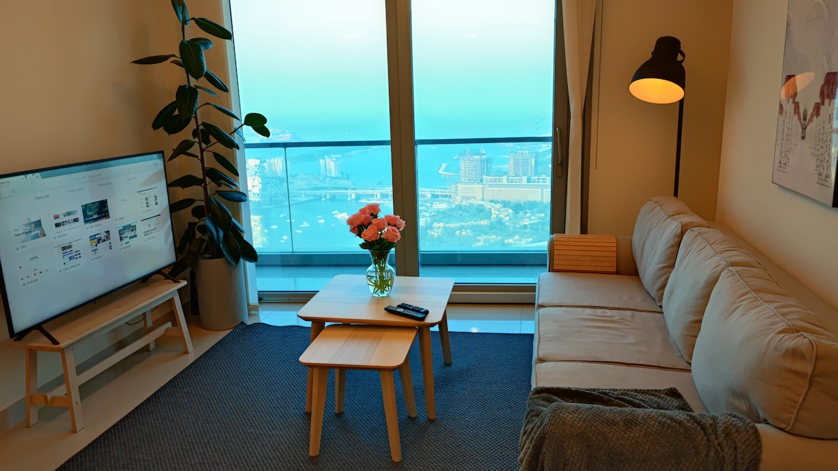 Die Premium-Wohnung mit herrlichem Blick auf den Burj Khalifa und teilweise auf den Brunnen. Die Unterkunft in der ersten Reihe befindet sich im Herzen der Innenstadt von Dubai, direkt neben dem Burj Khalifa, 100 m von der Dubai Opera und 200 m vom Brunnen/Dubai Mall entfernt. Es ist das einzige Gebäude mit direkter U-Bahn- und Einkaufszentrums-Verbindungsbrücke. Ein malerischer Swimmingpool, ein Fitnessraum und ein Tennisplatz stehen zur Verfügung. Die Wohnung verfügt über einen persönlichen Assistenten, WLAN, Smart-TV mit Netflix, Kingsize-Bett und ein Schlafsofa. Genieße deine Reise nach Dubai.
