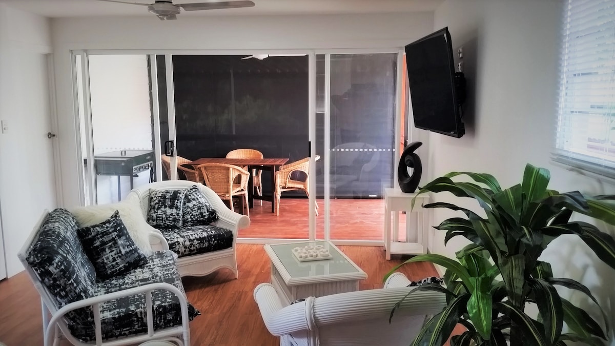 Getrennt vom Haupthaus ist dieses schöne, vollständig unabhängige, klimatisierte Studio perfekt für Paare. Es verfügt über ein Queensize-Bett und ein hochwertiges Doppelschlafsofa für eine zusätzliche Person. Das Studio ist komplett unabhängig und verfügt über direkten Zugang zum Pool. Geschmackvoll eingerichtet, verfügt es über den gleichen Komfort wie zu Hause und ein offenes Fließgefühl, das viel Licht und frische Luft ermöglicht. Nur 5 Gehminuten von Cafés, Restaurants und Flaschenläsern und nur 10 Gehminuten vom Herzen von Palm Beaches Restaurants, Surfclub, Cafés und Bars entfernt.