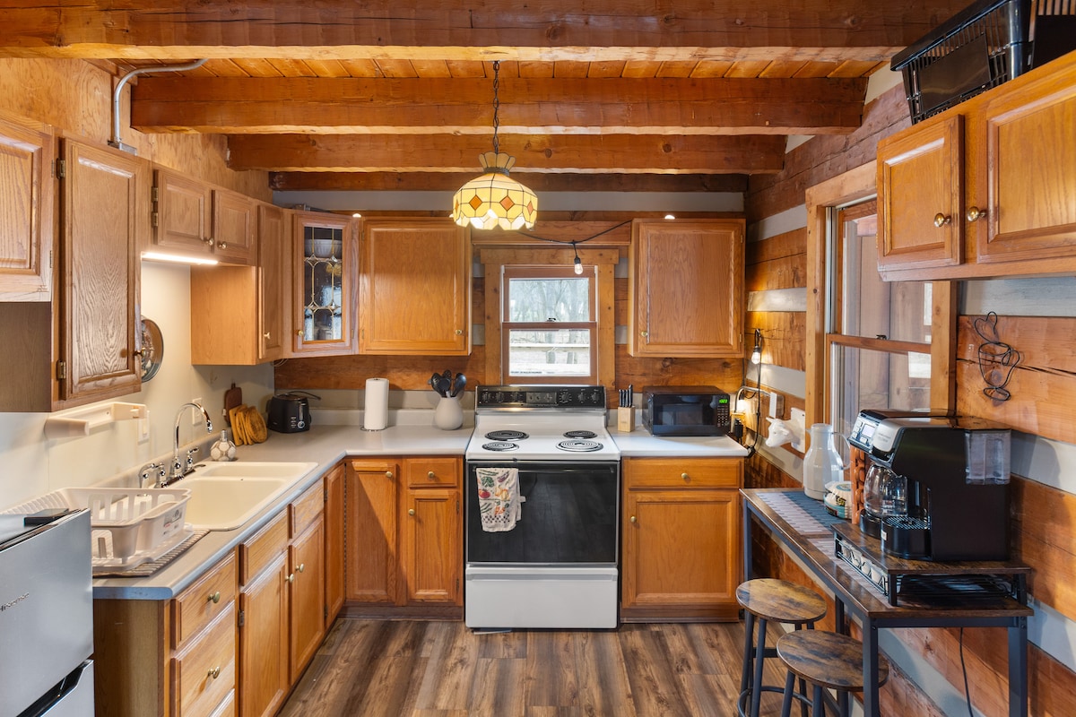 If you're looking for marble countertops, this may not be your place. But if you’re seeking quiet, character, and a taste of how things used to be, with a modern twist, welcome to our 1800s-era cabin. Renovated in 2022, the cabin is comfy but you can expect creaky floors, original woodwork, and a few quirks that come with age. The cabin is authentic, and thoughtfully kept. You will have TV, wifi, central heat, air conditioning but expect to hear the water pump run and there is no dishwasher.