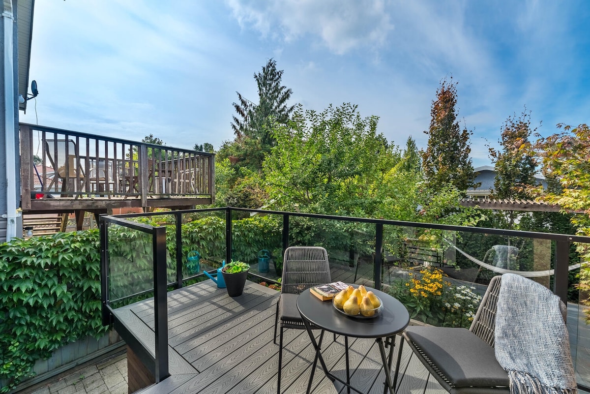 Eigene Suite in einem neu gebauten Haus mit eigenem Eingang! Im Herzen des Stadtteils The Heights. Unsere Suite ist modern mit einem frischen Gefühl mit einem schönen Hinterhof. Zu Fuß zu einigen erstaunlichen Restaurants, Cafés und Feinkostläden. Toller Ort für FIFA 2026-Fans! In der Nähe des Pacific Coliseum. Nur 15 Minuten Fahrt ins Stadtzentrum! Die Transithaltestelle ist nur 7 Gehminuten von hier entfernt. Informationen zu Bussen und Skytrain findest du auf translink.ca.