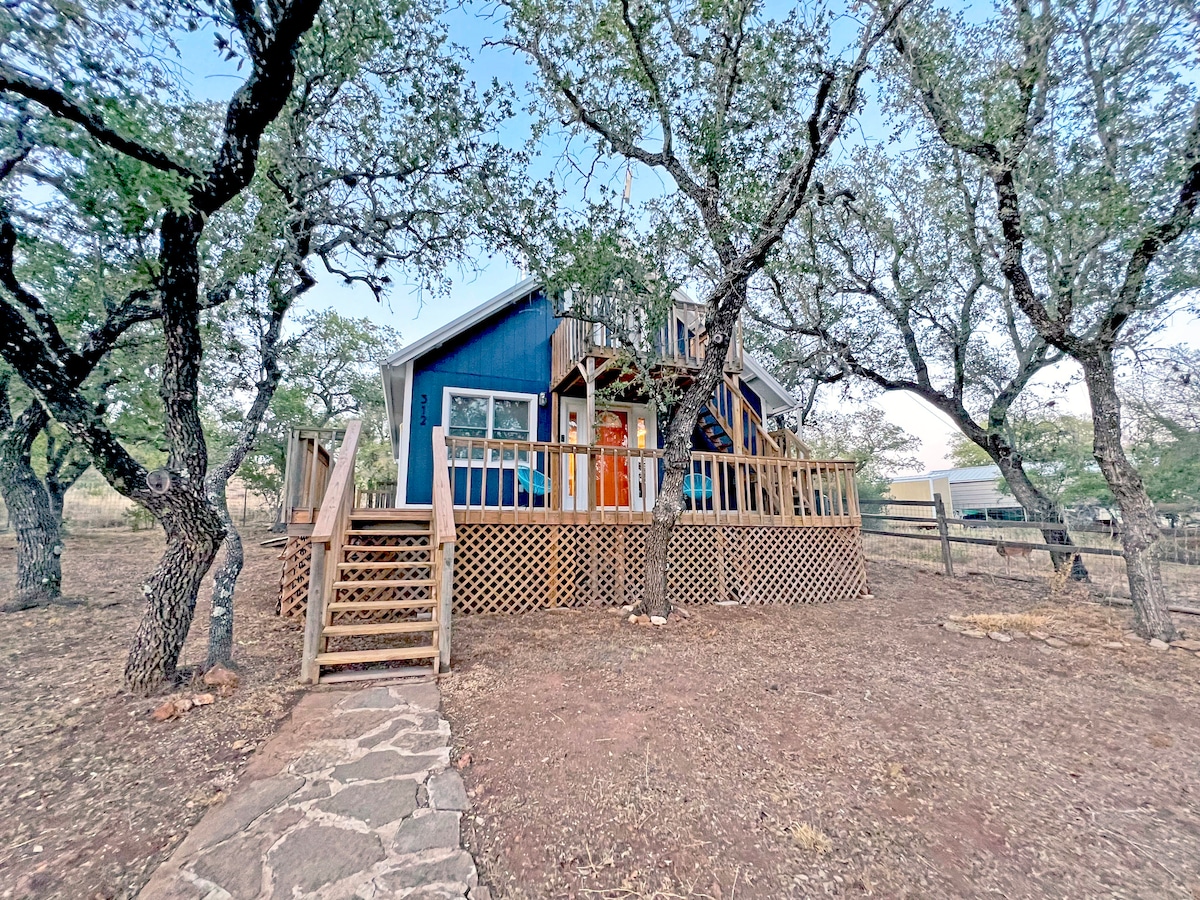 Immerse yourself in ranch life at this unique and tranquil getaway in our Boho Bunk house! The Bunkhouse includes a coffee bar complete with coffee maker & mini fridge, full bath w/ corner shower, & queen sized bed. The bunk house is nestled among majestic oaks on a small livestock ranch in the heart of the Hill Country. Come escape the craziness of the city and hang with the other ranch residents: Bud, Sissy & Pancho Donkeys, Dune Bug & Doc the horses and Missy and Lefty the floppy eared goats.