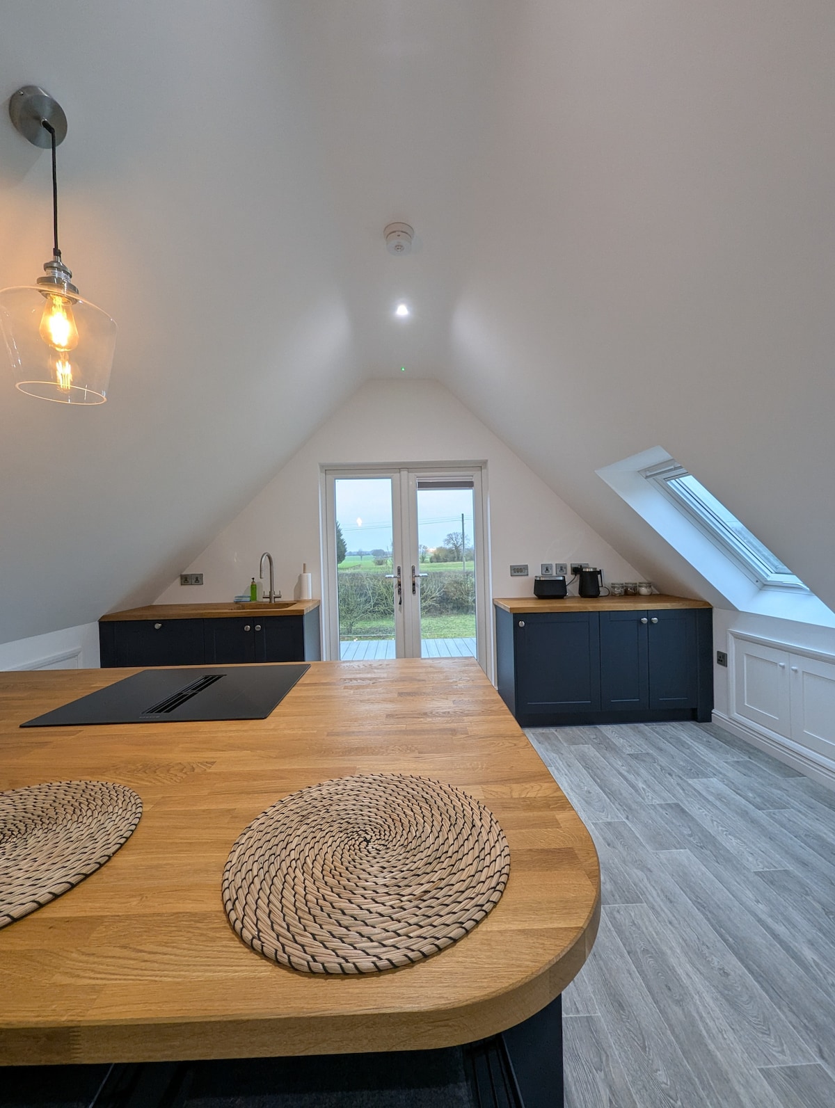 Curlew Retreat, sep. kitchen & living, EV charger