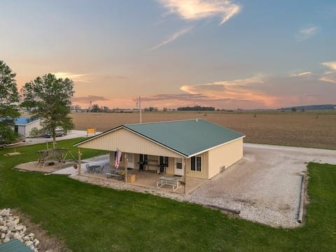 Entspanne dich mit der ganzen Familie in dieser ruhigen Unterkunft. Genießen Sie den Wohnbereich im Freien, die Gasfeuerstelle, die Holzfeuerstelle, die Hufeisen und den Minigolf. In der Nähe des Lewis and Clark State Park (blauer See) Das Haus hat ein offenes Konzept mit Granit-Arbeitsplatten und einem Holzofen.